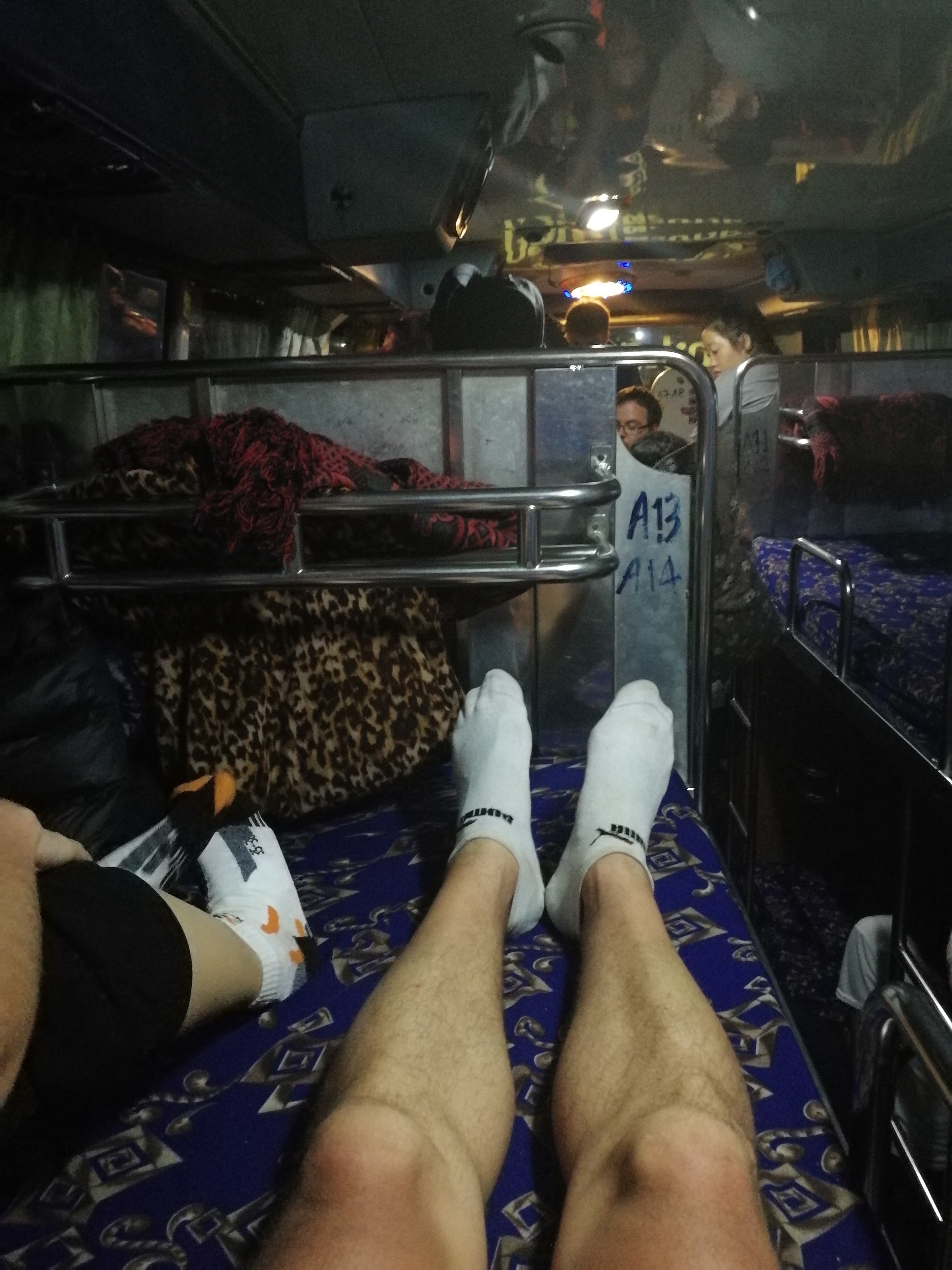 Description : Exceptionnellement une photo de nuit. 13h de bus de Ventiane à Luang Prabang. Le confort ça sera pour plus tard 😂😂