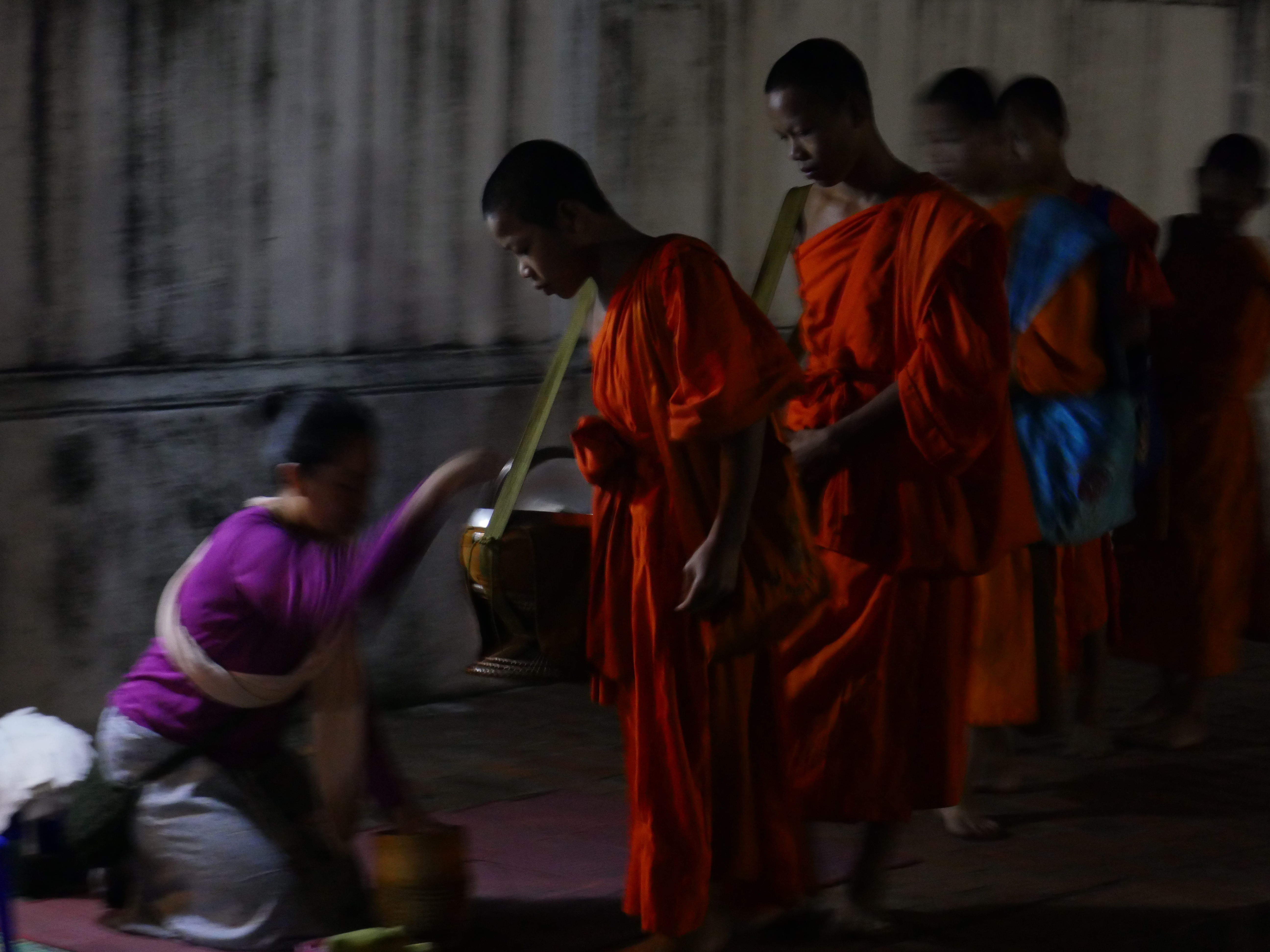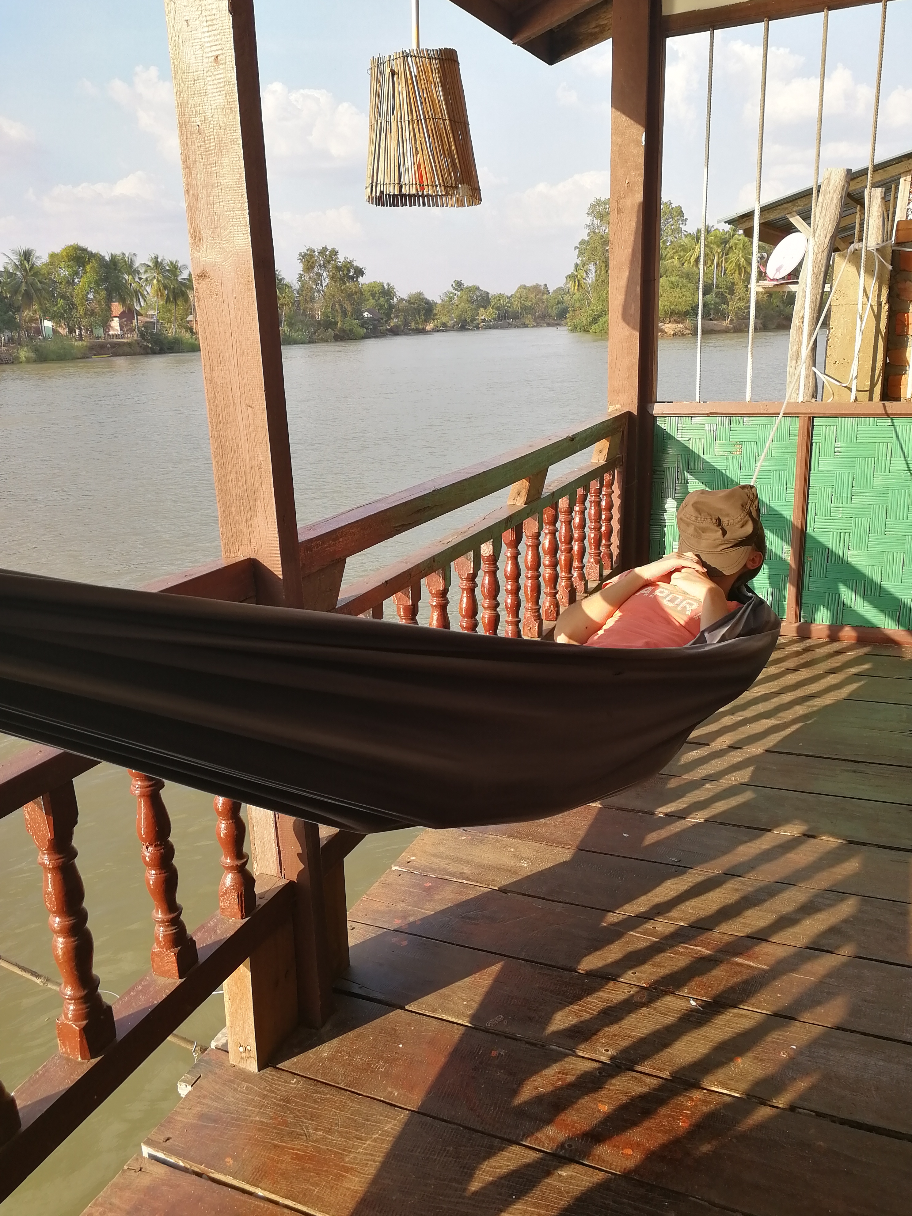 Description : Impossible aujourd’hui de choisir entre : le levé aux aurores, 4h30, pour aller voir l’aumône des moines et le pont en bambou artisanale avec les pieds dans l’eau.