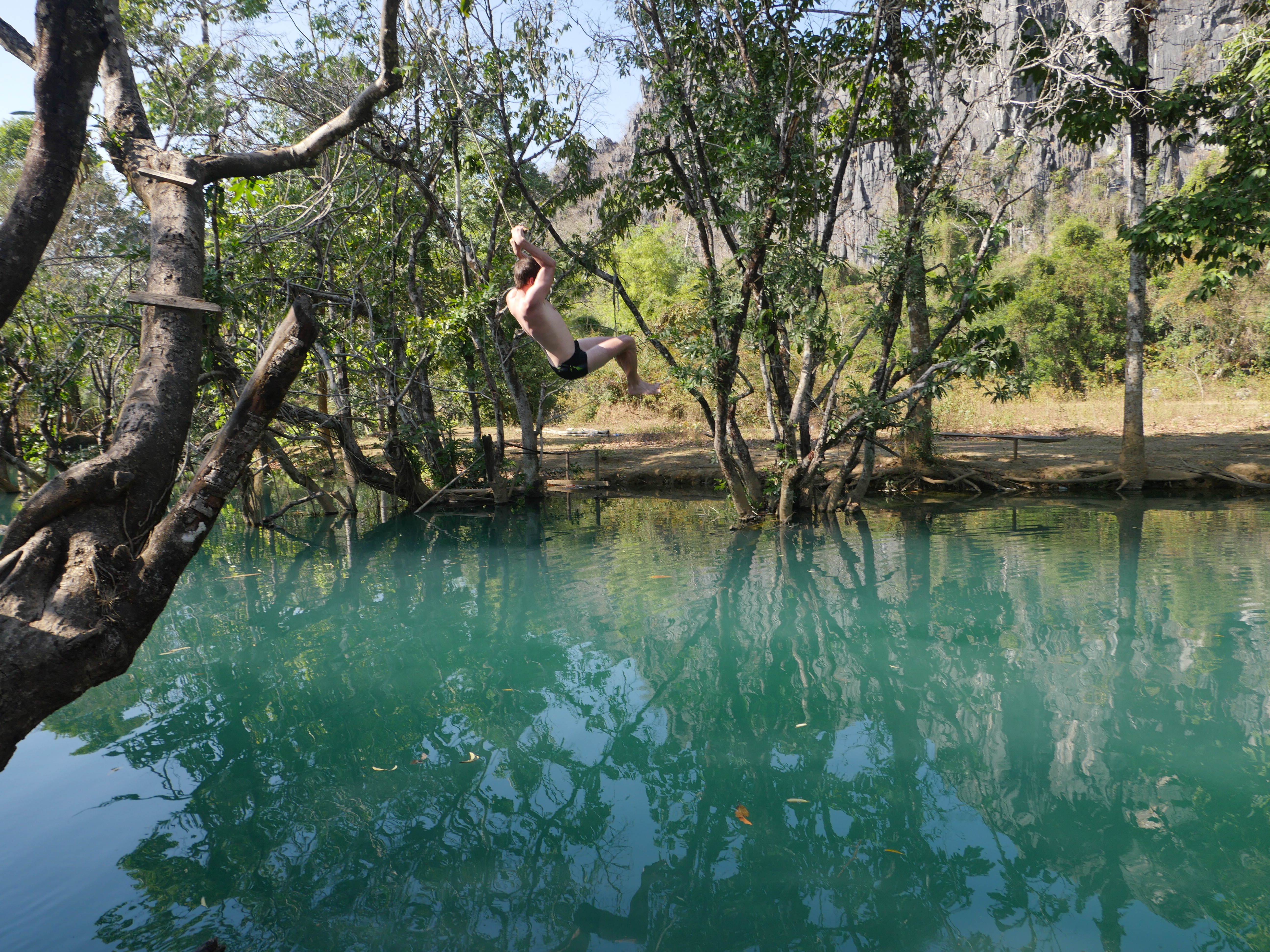 Description : Dernière journée de la boucle, avec beaucoup de scooter en perspective ! Mais on a trouvé un moment de détente bien mérité au Blue Lagon, histoire de faire Tarzan, avant de voir notre premier couché de soleil sur le Mékong.