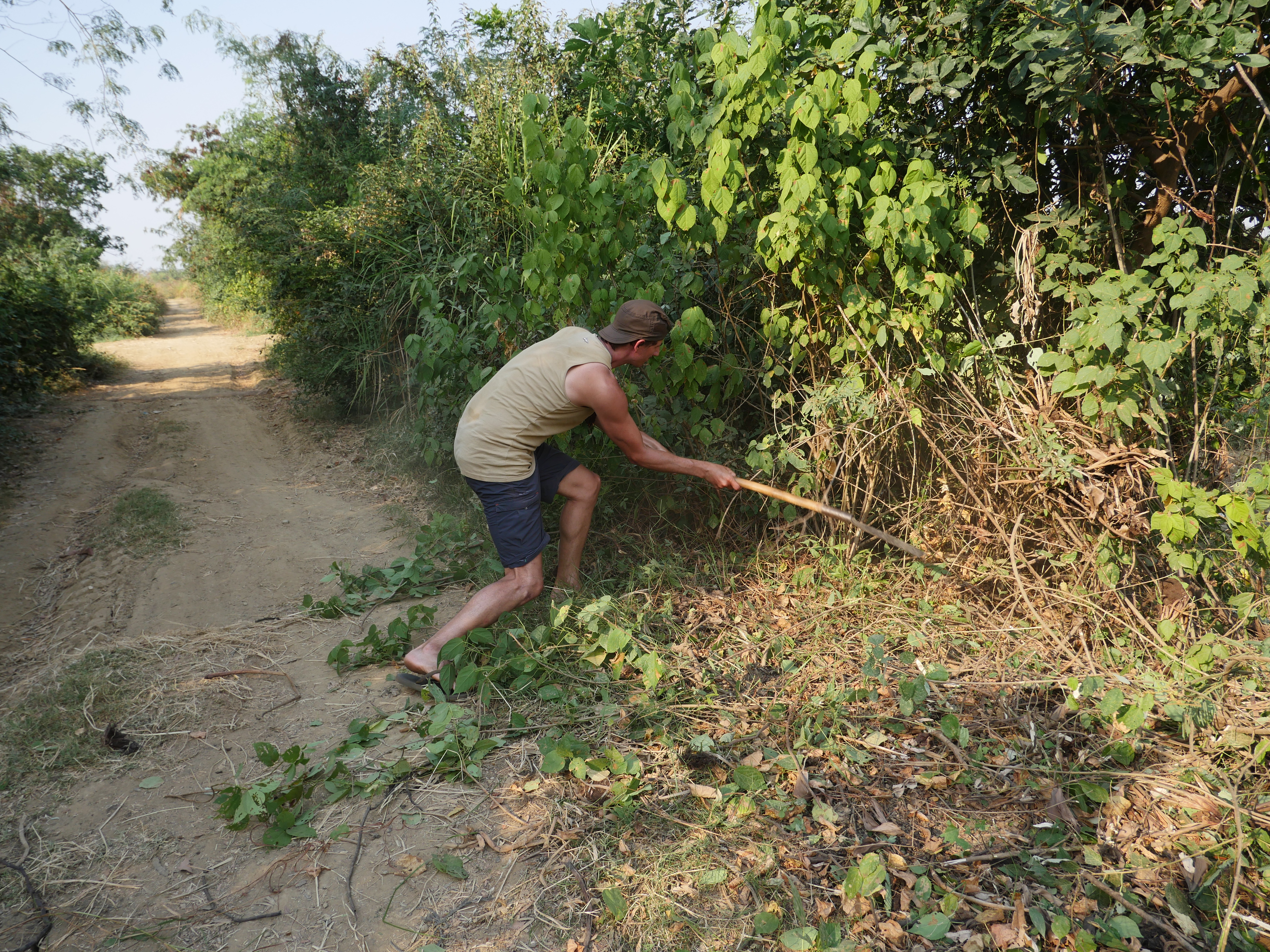 Description : On avait prévu de partir mais finalement on se sent bien dans ce village, donc on reste une journée de plus. De mon côté, atelier menuiserie où j’aide « Khan » avec ces portes. Très sympa, il avait l’air content de mon travail 🙂
