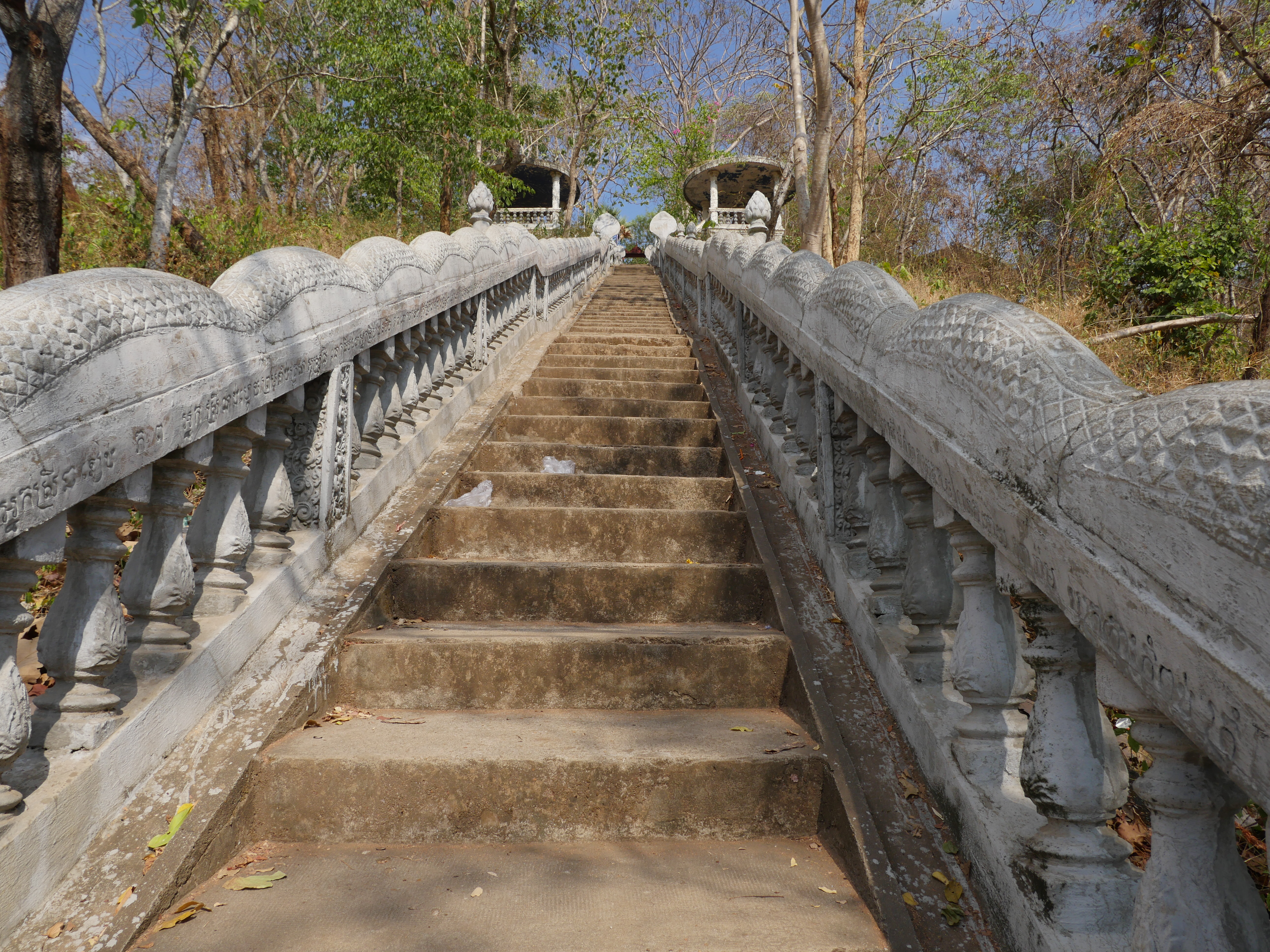 Description : Direction le temple de Wat Phu en vélo (24km aller retour). C’était très beau et la vue en haut est magnifique sur toute la vallée (mais bon, dur d’y monter !)