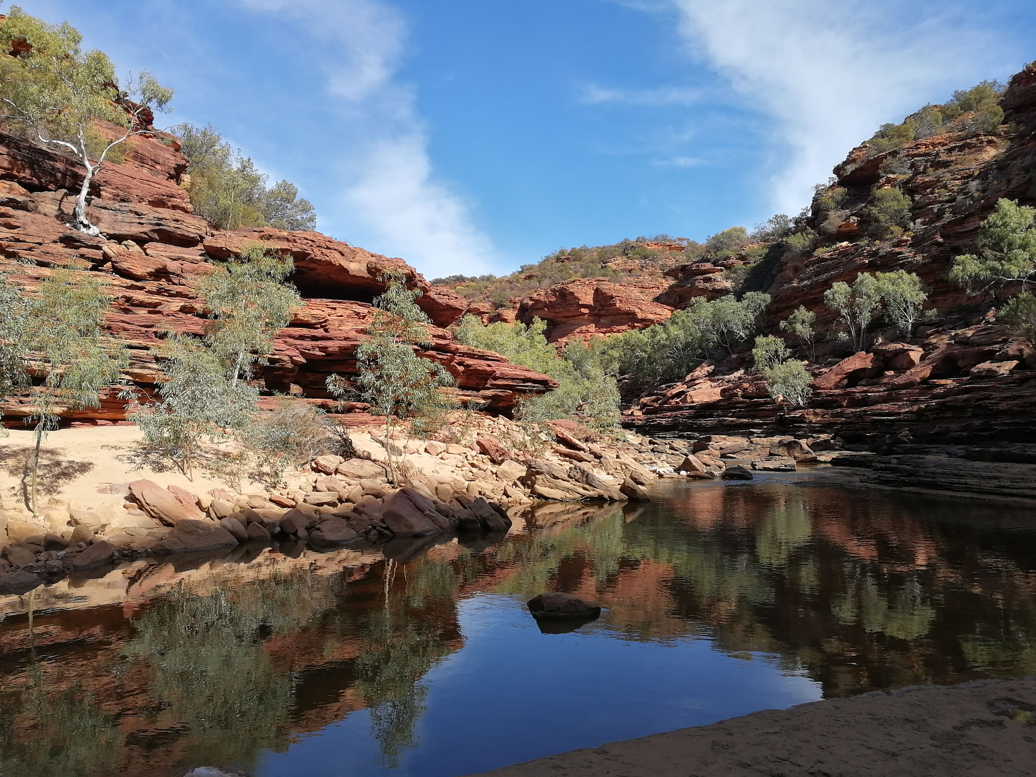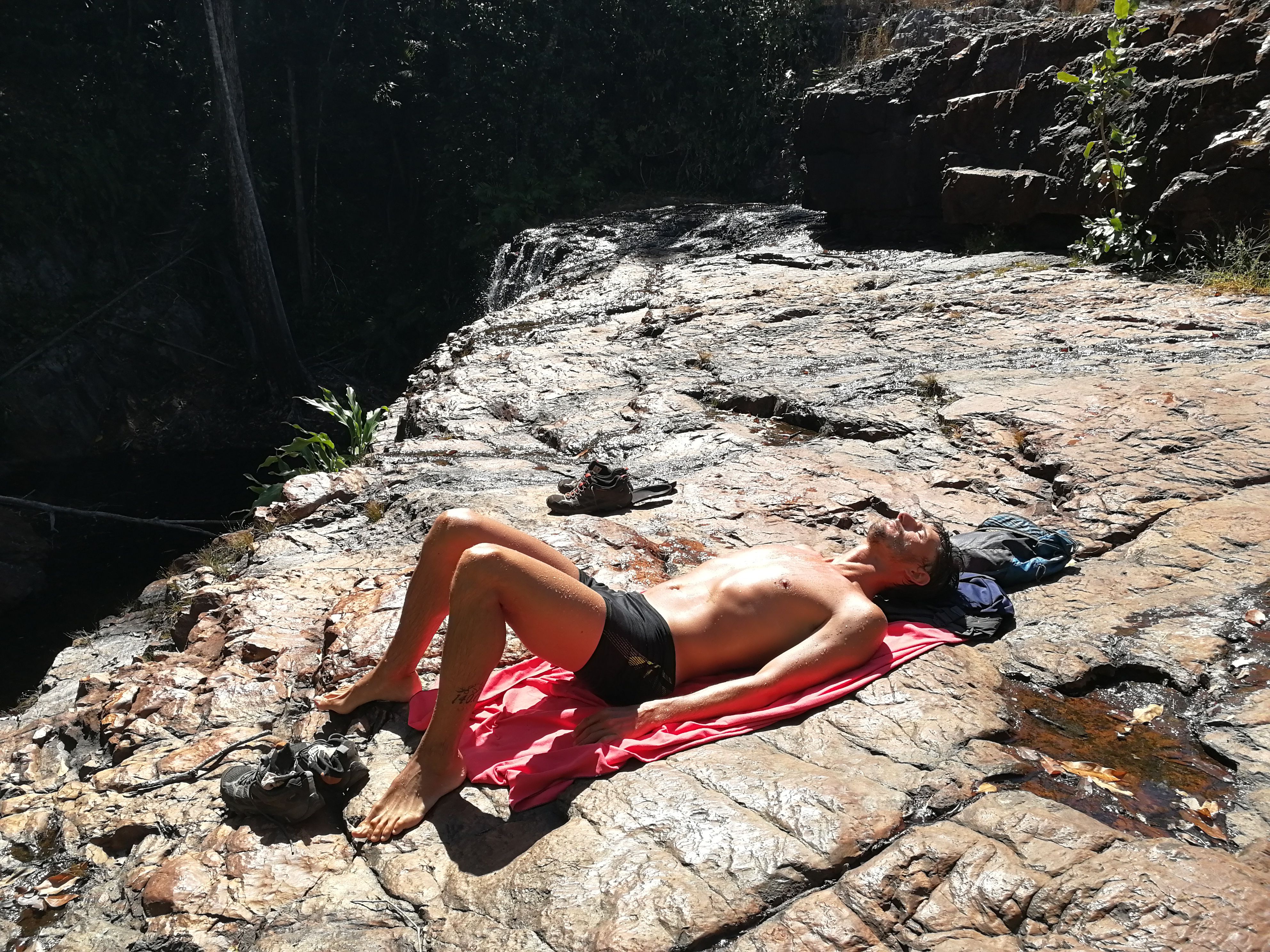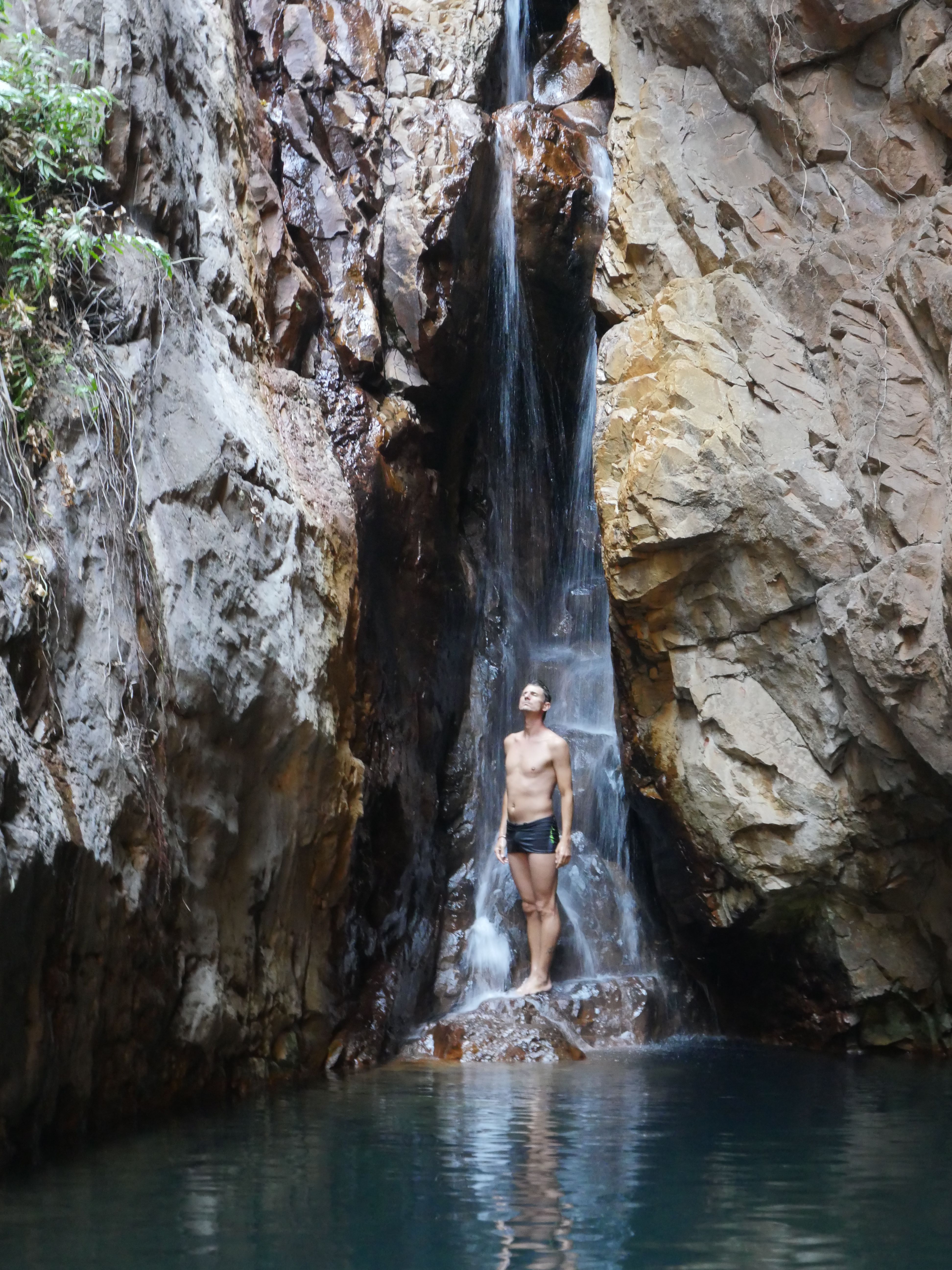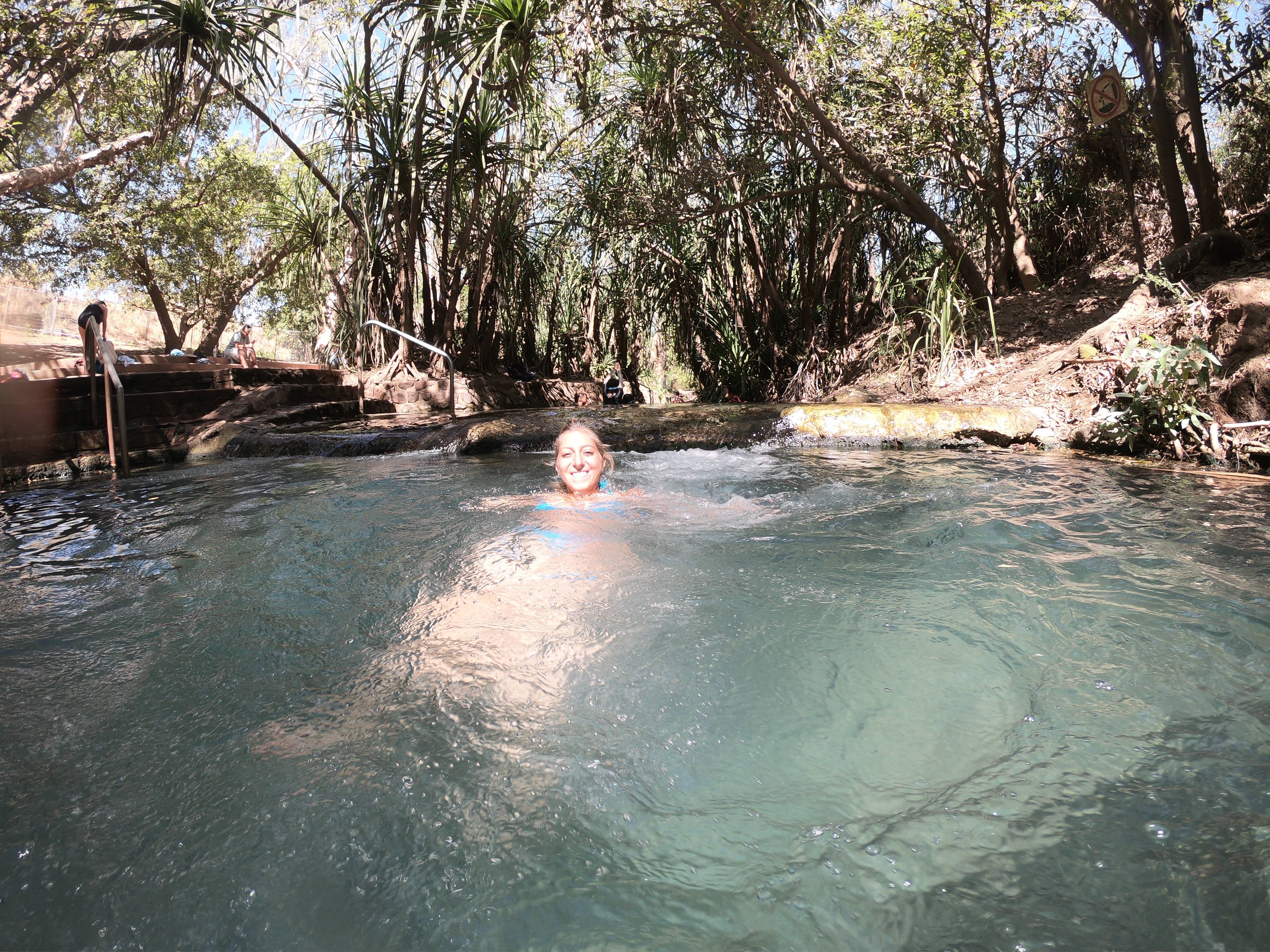 Description : Impossible de passer à côté de notre premier levé de soleil. Ensuite, 150km de scooter aujourd’hui pour aller jusqu’à « Cool Springs ». Vraiment un endroit reposant, isolé de tout, avec une eau turquoise. Quand il fait 35 degrés, c’est parfait 🙂