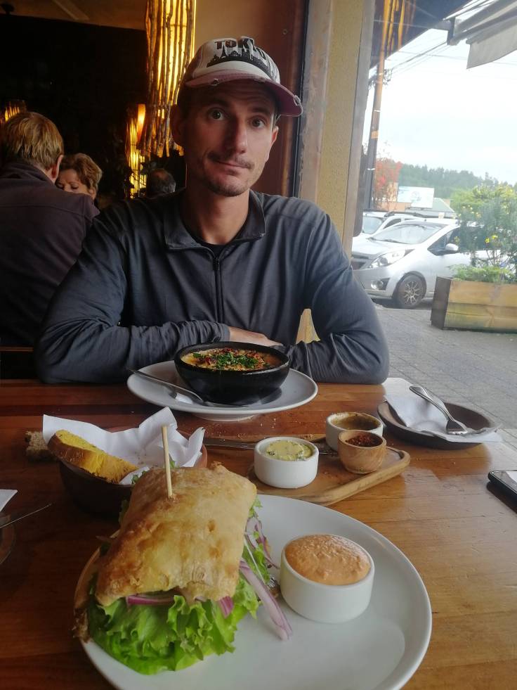 Description : On a rendu la voiture après un trajet de 3h30 sous la pluie pour rejoindre Bariloche. Du coup, on récupère des forces ! 🙂