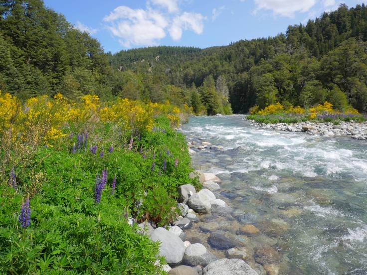 Description : Une longue route encore pour rejoindre le parc national de Los Alerces. Bien qu’il ne soit pas extra, la route encore pour y aller est superbe avec toutes ces fleurs jaunes et les montagnes enneigées.
