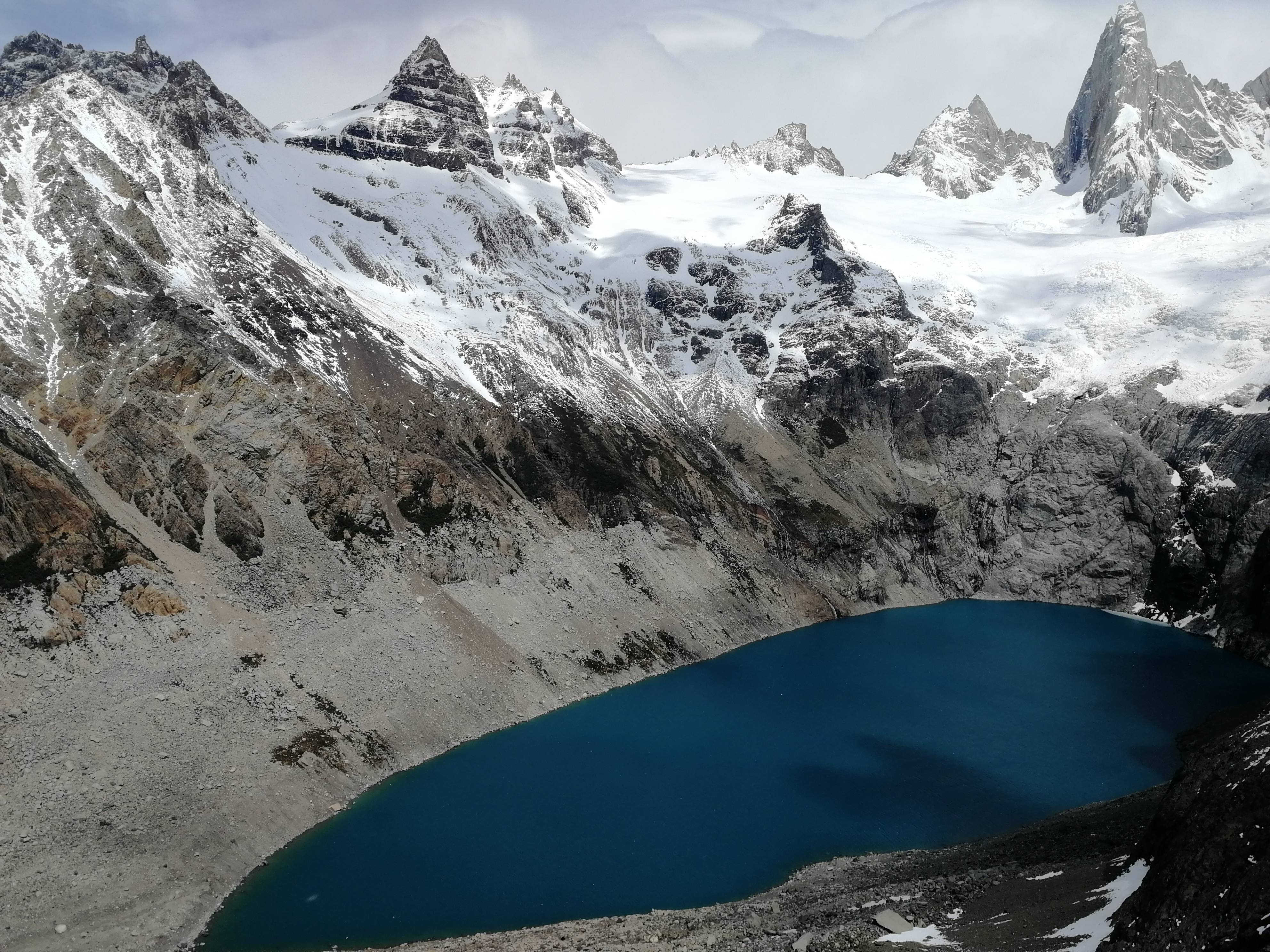 Description : Notre plus longue journée de marche aujourd’hui, 35km ! Mais on a pu voir un superbe Cerro Torre ! Jusqu’à midi le ciel était nuageux mais une fois les nuages partis, c’était génial !