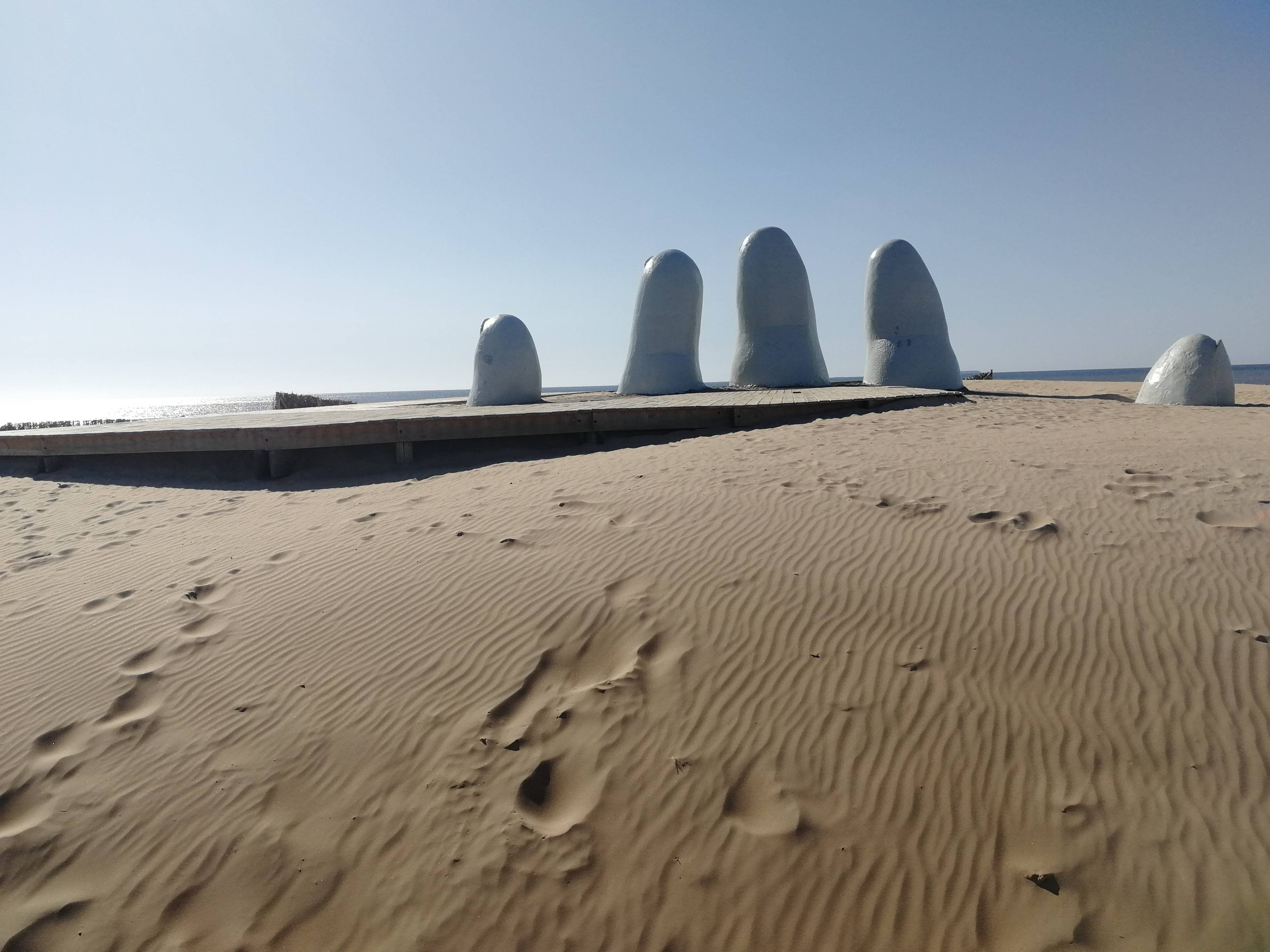 Description : Avant de repartir pour Montevideo, on a pu profiter de la sculpture « The Hand » qui se trouve au bord de la plage. Sans trop de monde cette fois-ci !