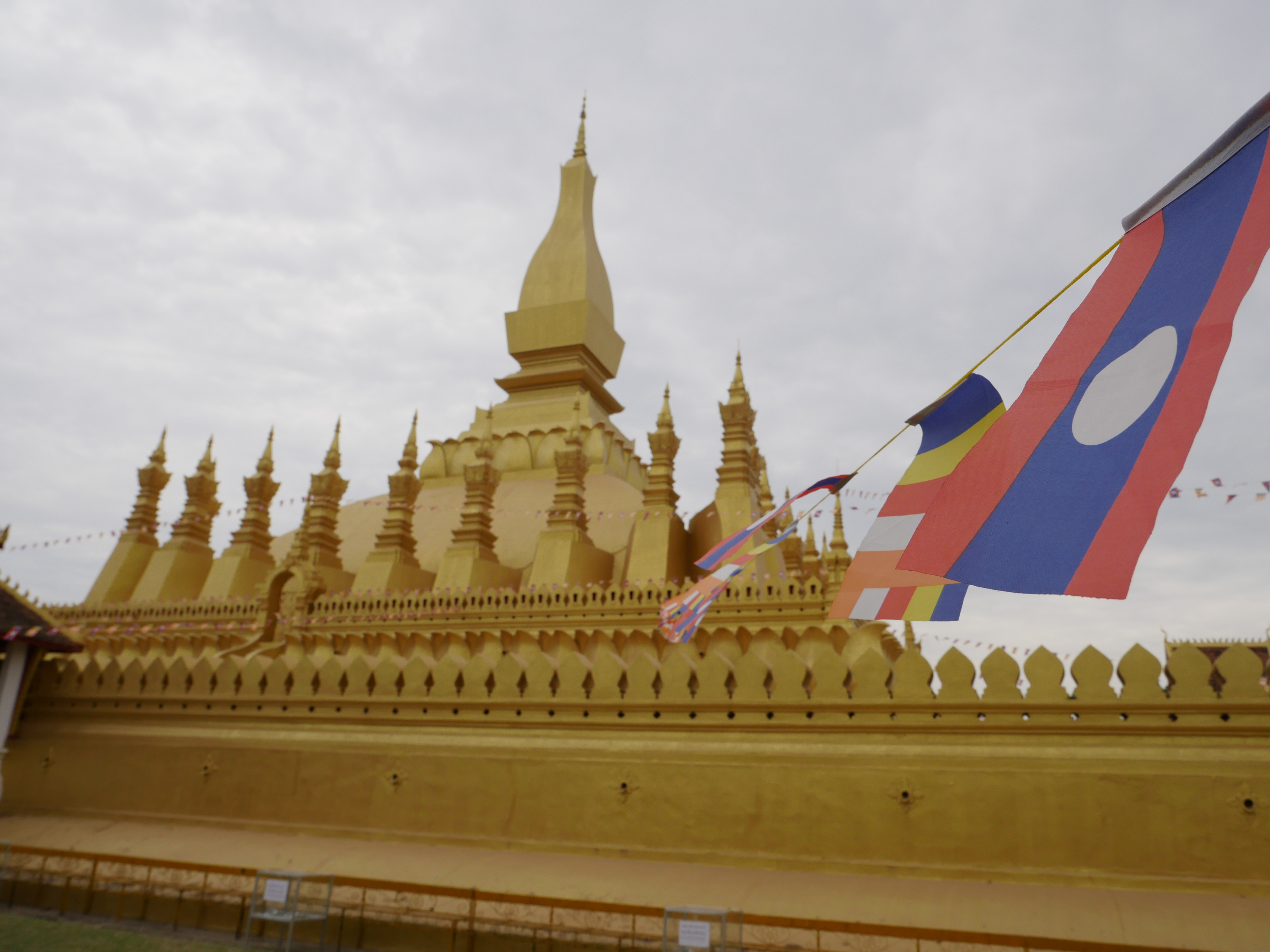 Ensuite direction LE temple à ne pas rater à Ventiane, le Pha That Luang. Le complexe est assez grand et le temple vraiment très beau ! Brillant et assez haut, il est entouré d’un espace vert qui est lui-même entouré d’un mur. Notre temple coup de cœur ! 🙂 A côté, il y a deux autres temples qui sont tout aussi beaux.