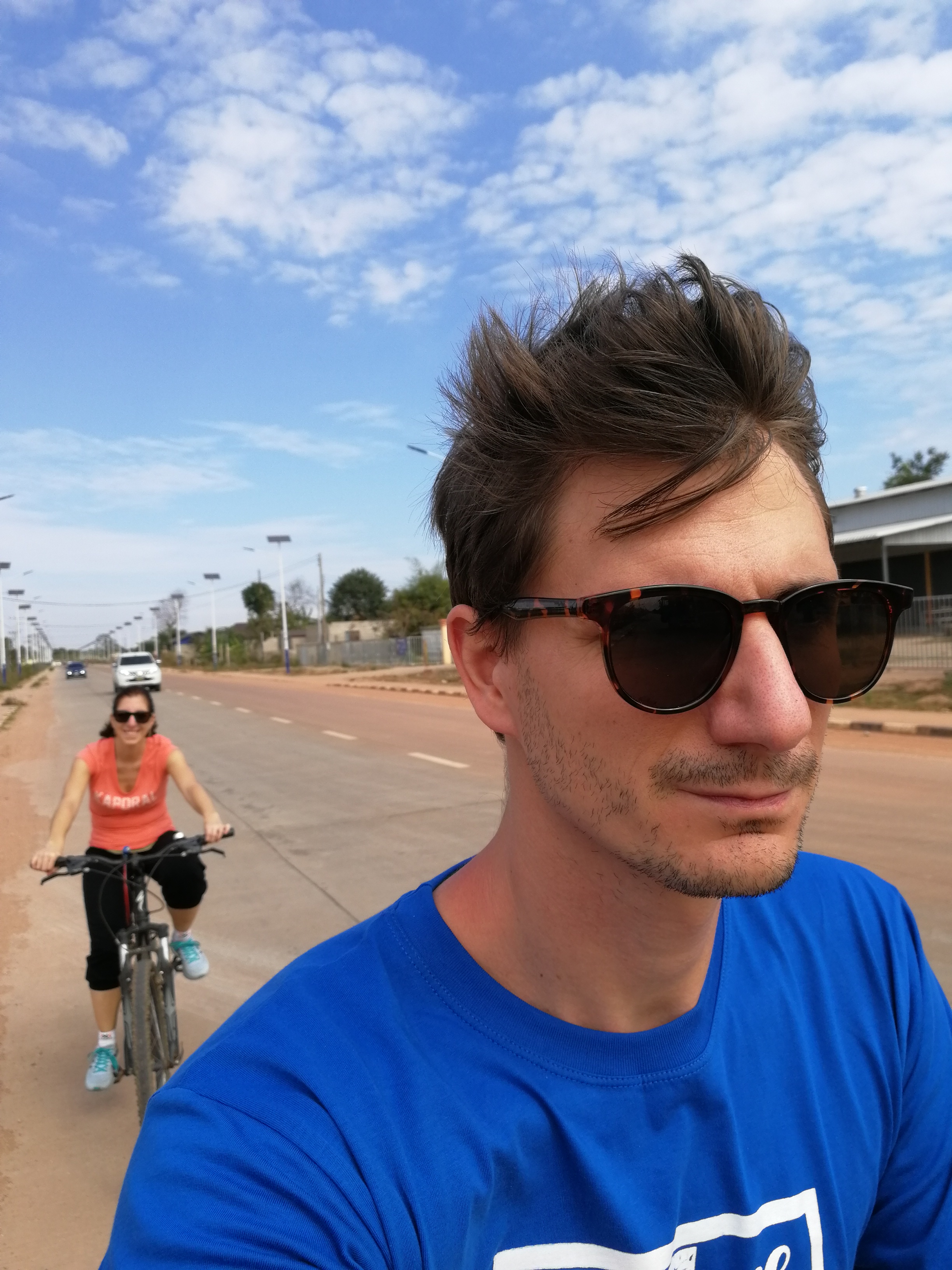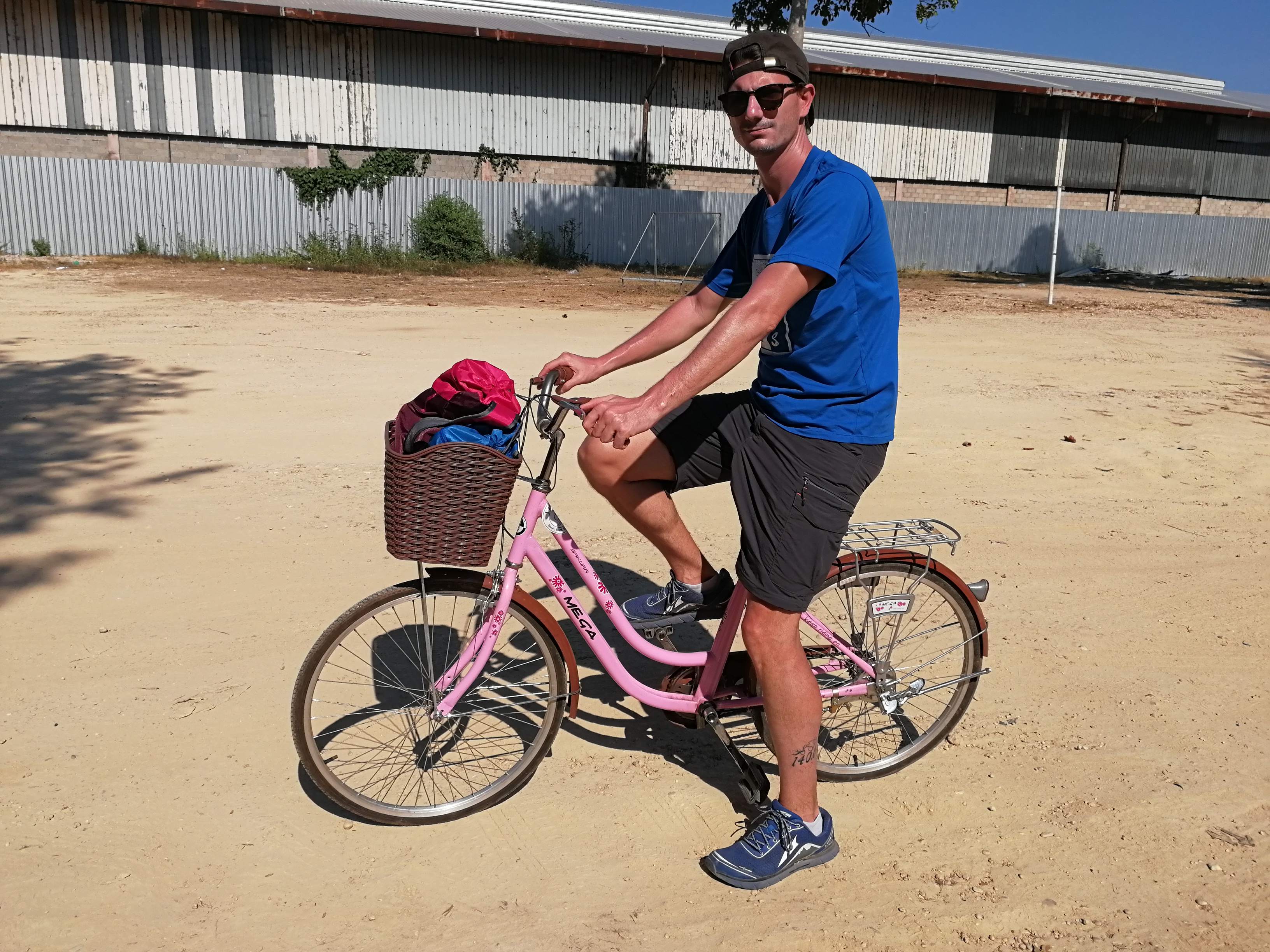 Après avoir bien marché la veille, on va maintenant faire pas mal de vélo ! On a prévu d’aller à Bouddha Park qui est à 25km du centre de Ventiane. Une fois nos montures choisi, on est parti ! La route était plutôt en bon état et pas du tout vallonnée. Heureusement car avec mon vélo mono-vitesse ça aurait été galère ! Déjà qu’il est pas rapide du tout, alors si en plus ça monte, je suis mort ! En plus, mon guidon se desserre un peu donc il faut que j’évite de trop tourner… Quoi ?! Il est pas beau mon vélo rose avec panier ? 🙂
