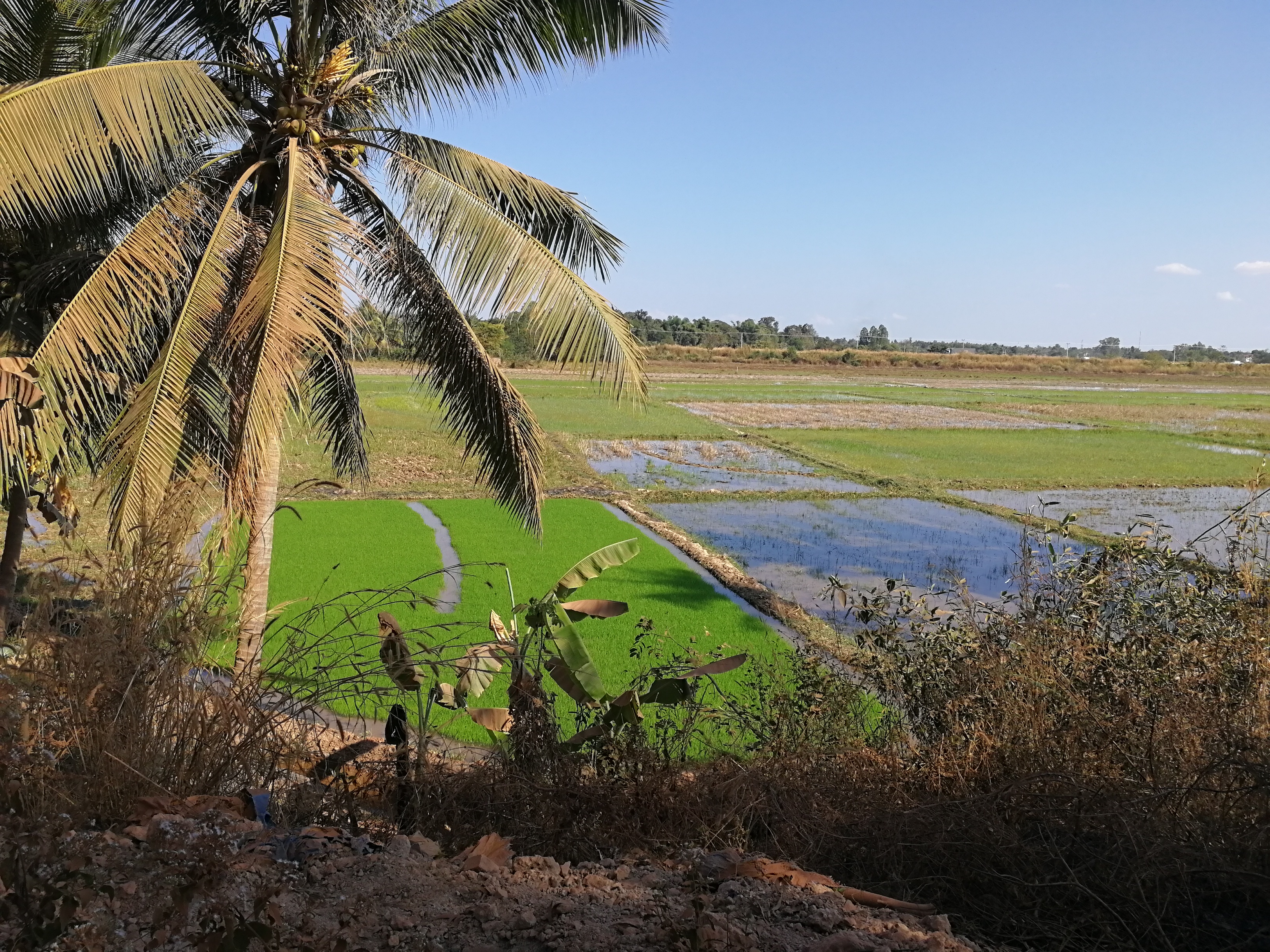 Il faut maintenant faire le chemin retour… et il est 14h… sous un grand soleil… Pas forcément facile, surtout quand Maps.me nous fait prendre un autre itinéraire, où il y a des sentiers. J’avais tellement peur de crever un pneu que je roulais à 2km/h 😀 Ria n’avait pas ce problème avec son vtt 🙂 Quasiment 2h plus tard, nous revoilà dans le centre de Ventiane, où on va manger car on a super faim ! On va au « Friendship Restaurant« , et pour se rafraîchir, on a commandé un « pineapple slurry iced », qui est juste sublime ! On ne se souvient pas avoir déjà bu quelque chose d’aussi bon !