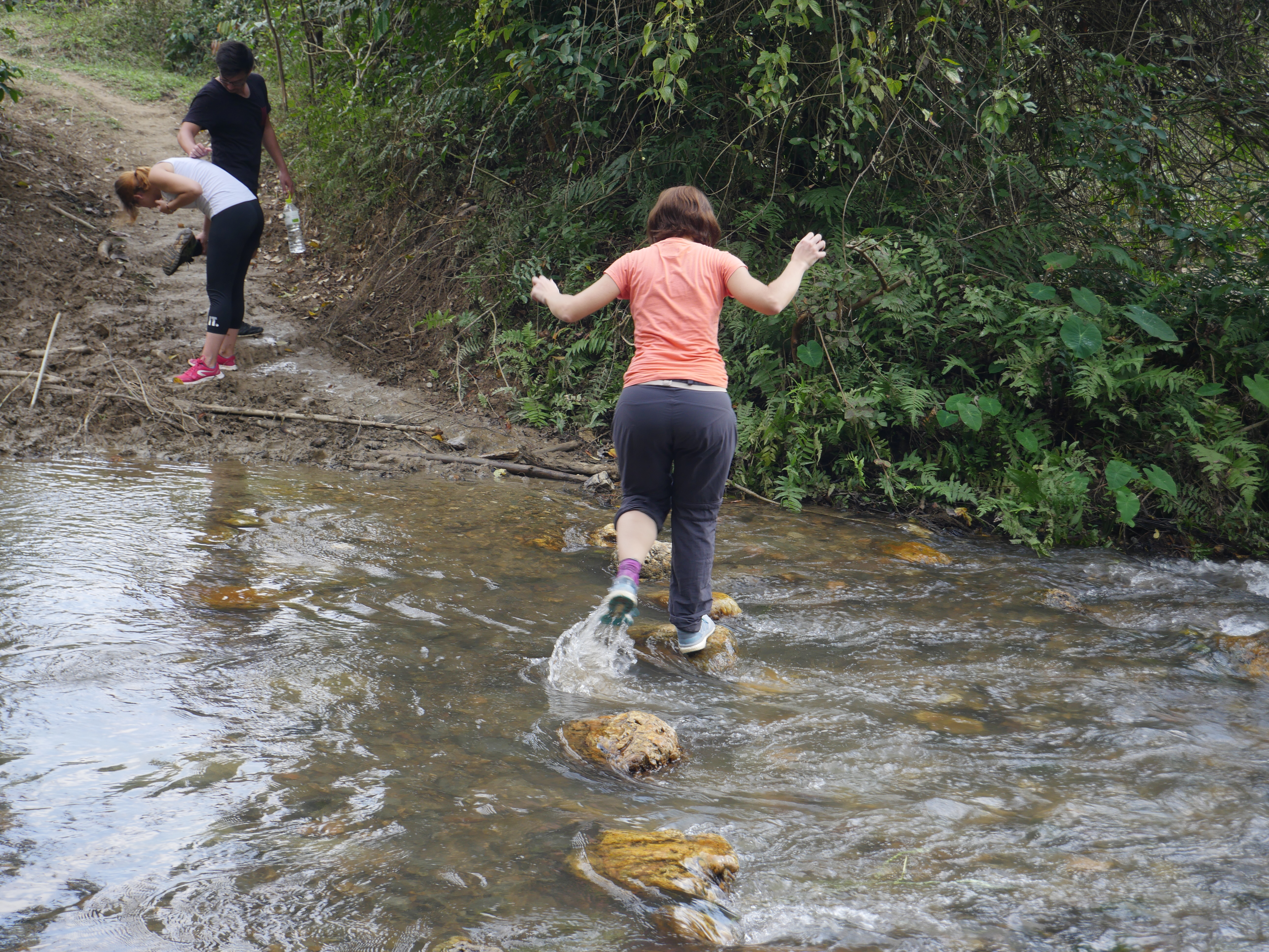 Direction maintenant le dernier village, Huang Sen, qui se trouve à environ 1h30. A chaque fois qu’on doit traverser un cours d’eau, on ne se prend pas la tête, on n’enlève pas nos chaussures. Il fait chaud, ça sèche très vite ! Ce village est beaucoup plus grand que Ba Nan mais les conditions sont similaires. Avec cette chaleur, on s’arrête dans le « bar du village« . On y croise des français, qui dorment là quelques nuits. Le confort est quelque peu rudimentaire et à 18h il n’y a plus d’électricité 😀