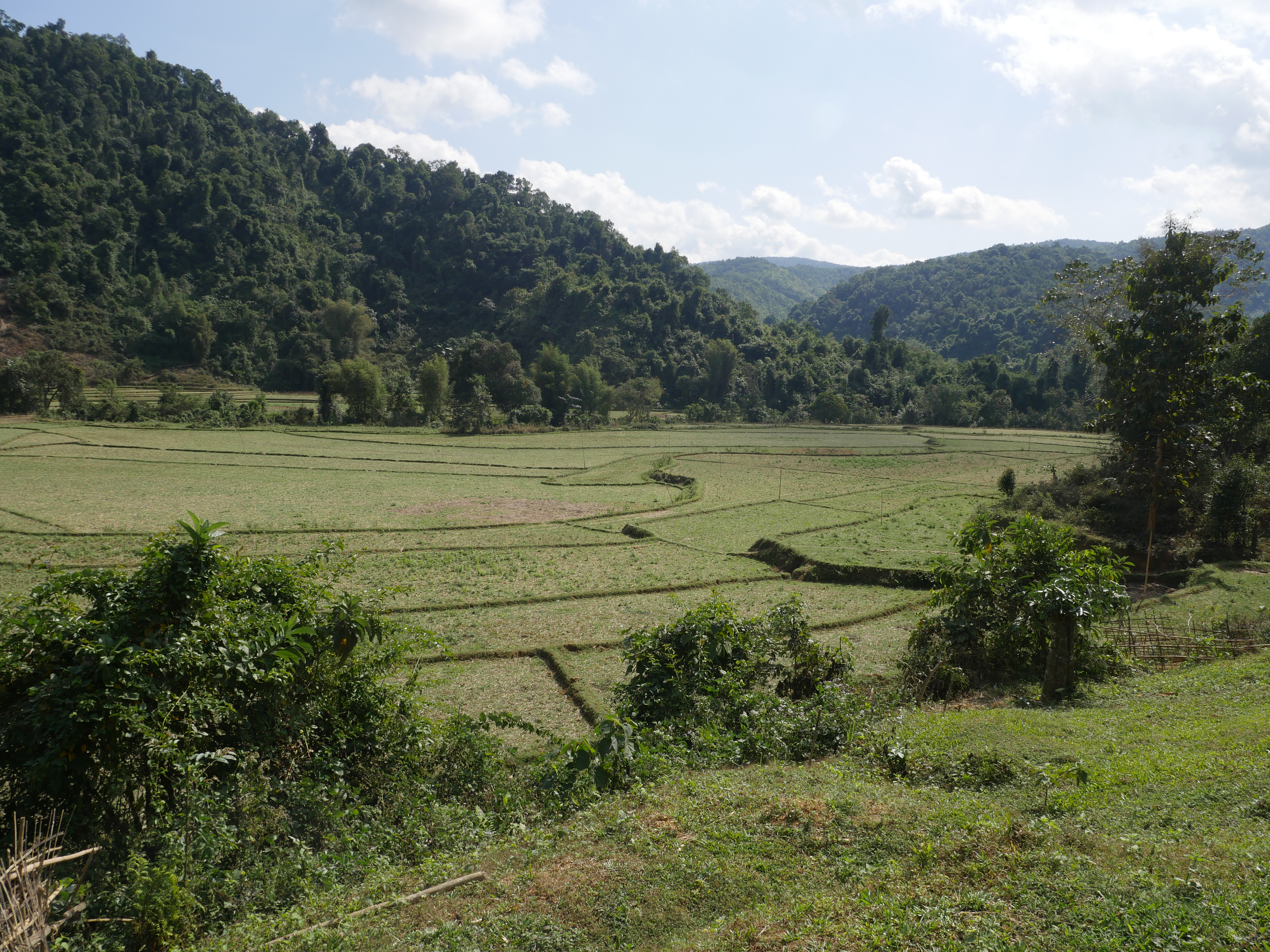 On continue notre route pour rejoindre le village de Houay Bo… que l’on n’aura jamais trouvé ! On a traversé le rizières, pris des minuscules sentiers, traversé des cours d’eau, mais aucun village.