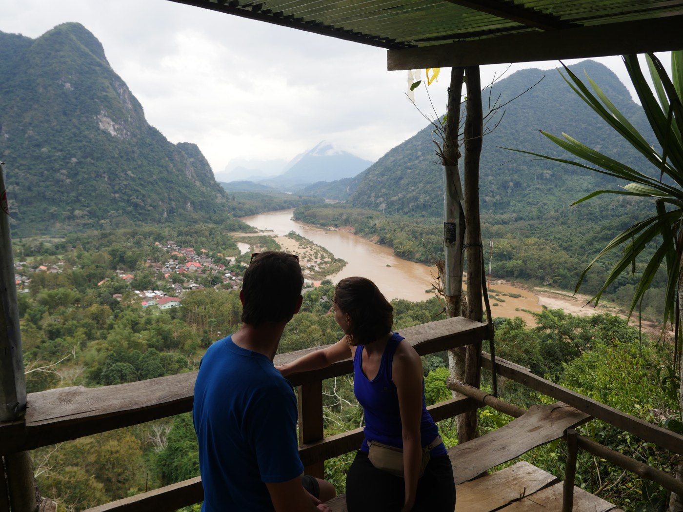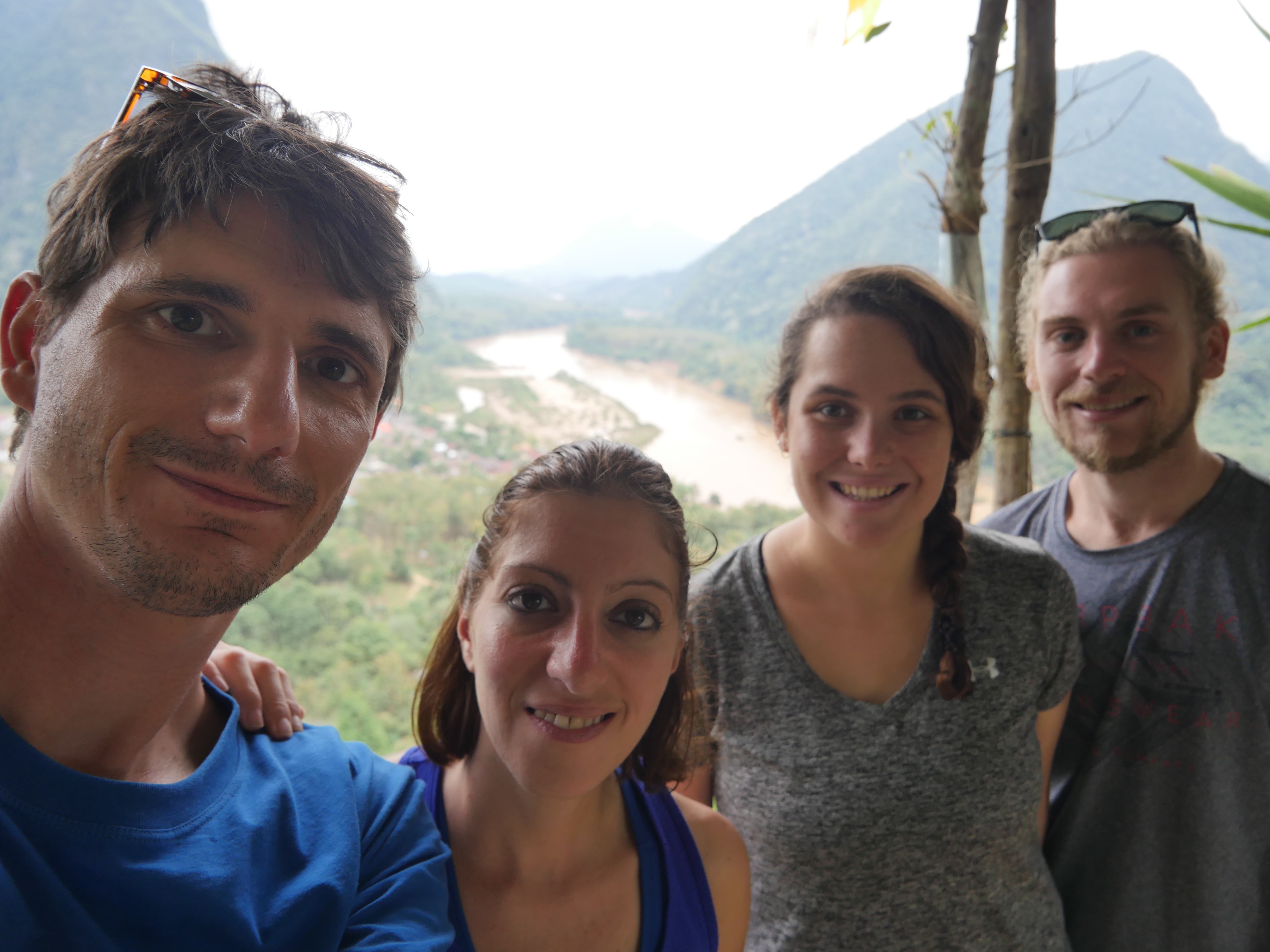 Rerebelotte avec le buffet 🙂 On se retrouve plus qu’à quatre aujourd’hui car Jonathan et Solène s’en vont. Journée relaxe aujourd’hui ! Direction le point de vue qui se trouve au nord de Muang Noi. Après avoir payer un droit d’entrée de 10 000 kips / personne, il faut monter pendant environ 45min. D’en haut, il y a une vue direct sur le village en contre-bas, et sur la rivière, Nam Ou. C’est très beau !