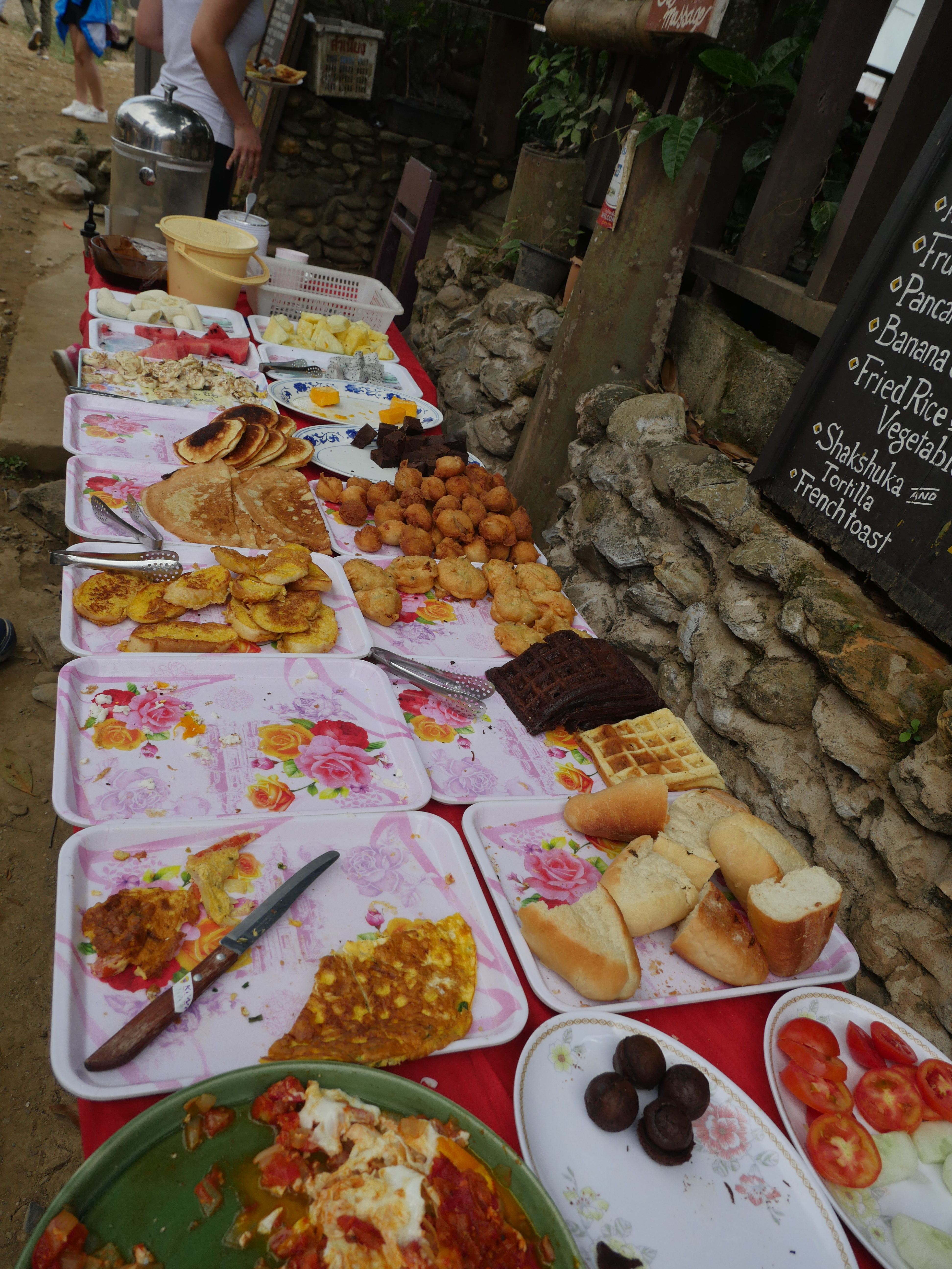 Phetdavanh ! Cela restera l’un des meilleurs petit-déjeuner qu’on a pris ! Il y avait de tout : crêpes, gâteaux au chocolat, gaufres, tortillas, fruits, … Tout est fait maison en plus et à volonté, c’était top ! Pour 35 000 kips (3,5€) ça vaut largement le coup !