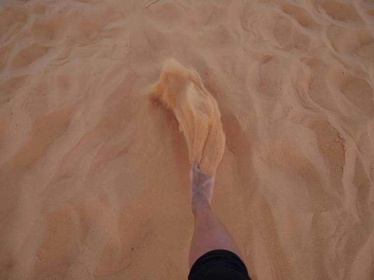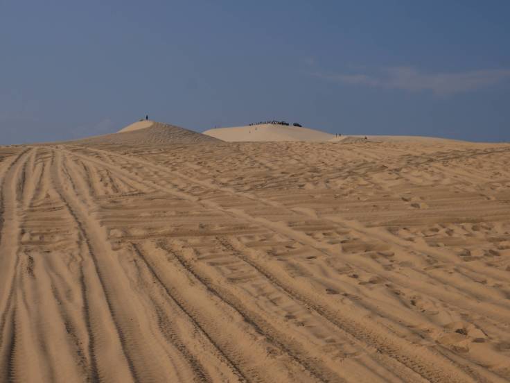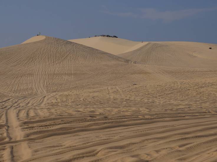 Les dunes de sable blanc… « 40min » Oui c’est bon on sait (finalement on restera 1h 🙂 ) ! Alors ce n’est pas du tout un endroit qui ressemble aux films avec les belles vues du désert. Tout ce chemin pour venir ici ?! C’est ça ? Deux ou trois pauvres dunes sur lesquelles il y a 100 personnes, autant de quad et du bruit partout ! En plus le prix du quad est juste incroyable : 9€/personne juste pour monter sur la dune ! Bah ils ne nous connaissent pas, on y va a pied (comme beaucoup en fait, car c’est vraiment juste à côté).