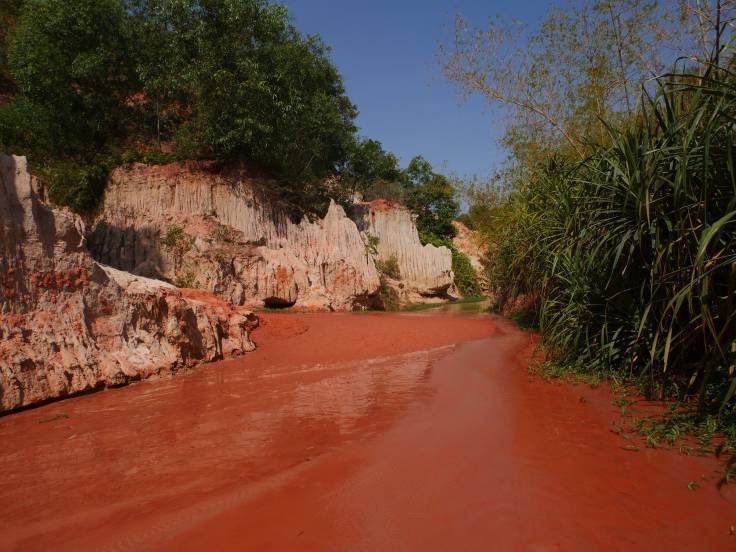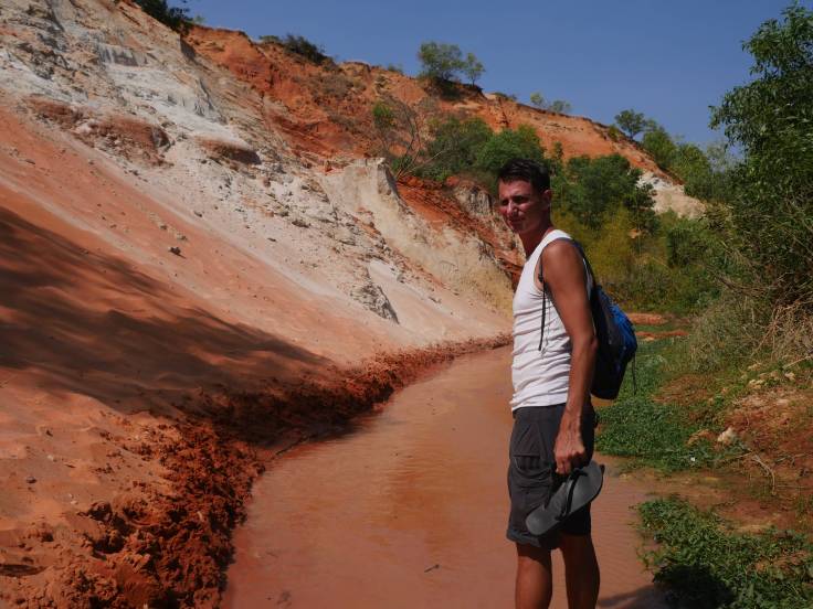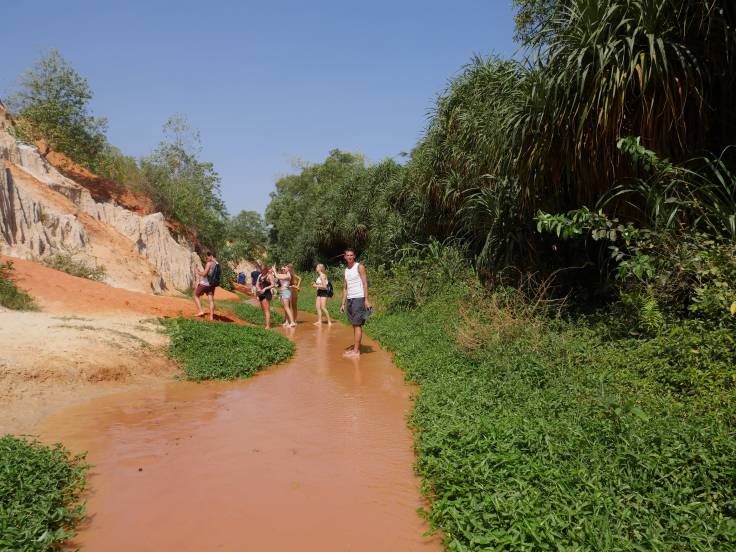 « Fairy Stream » est en fait un petit ruisseau, avec du sable, dans lequel on peut marcher pieds nus, avec sur le côté une falaise de calcaire et de terre couleur ocre. C’est très jolie et sympa mais la masse de touristes autour de nous rend le moment beaucoup moins relaxant.