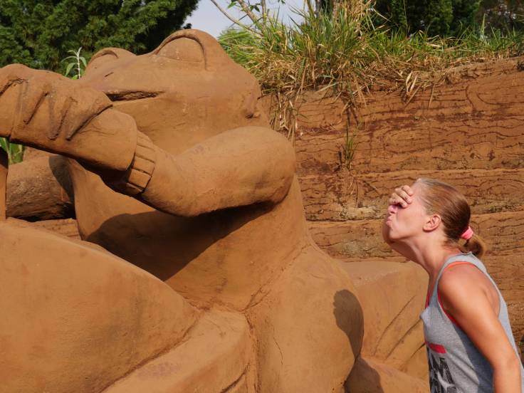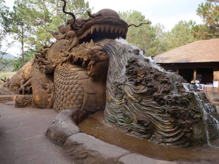 Après cette longue randonnée, mais ô combien intéressante, on a pris la direction du Sud pour aller à Duong Ham Dieu Khac. C’est une sorte de parc avec tout plein de sculptures en bois et de constructions en tout genre.