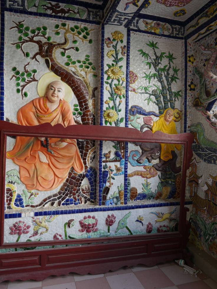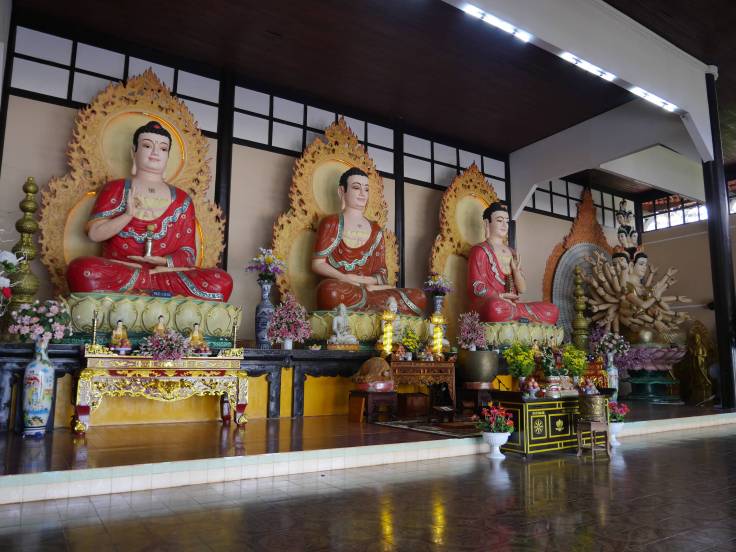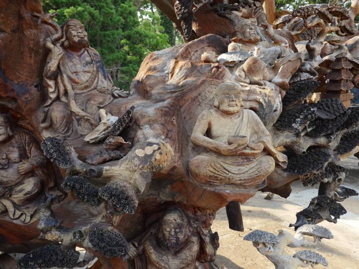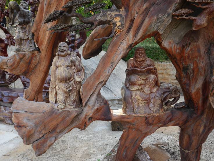 D’abord un grand bâtiment, puis des jardins avec de superbes sculptures en bois et deux magnifiques statues de bouddha. Enfin, il y avait également une immense statue de bouddha mais malheureusement elle était en travaux.