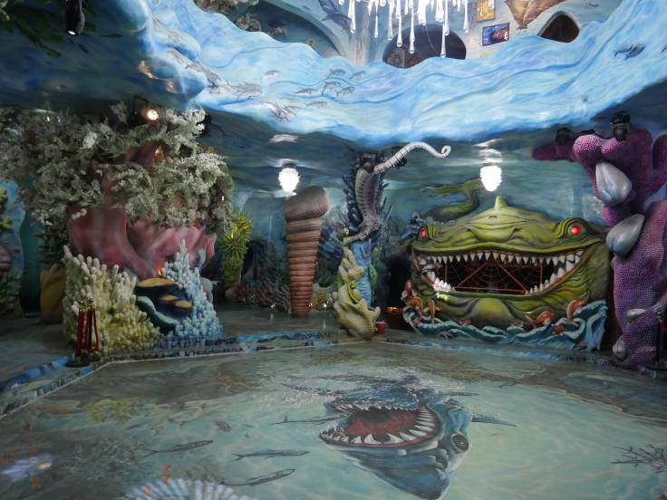 Enfin, pour clôturer cette journée intense, on se rend au Crazy House. Non ce n’est pas une boîte de nuit ni un pub, mais plutôt une « maison folle » ouverte au publique en 1990. Des décors farfelues, des peintures un peu partout, un petit labyrinthe,… Une sorte de retour en enfance pour nous deux, où on a failli se faire manger par un requin 🙂