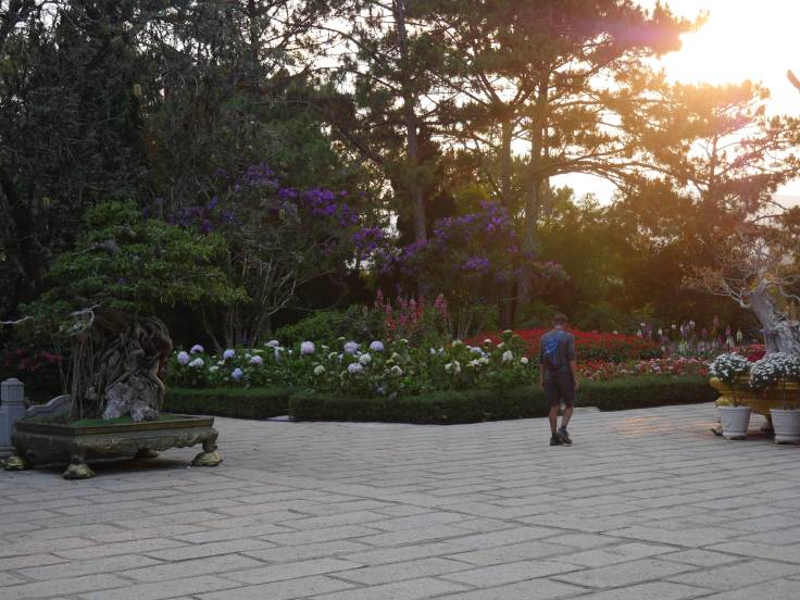 Enfin, pour terminer notre journée, on a fait une escale sur le chemin du retour dans le monastère Truc Lam Thien Vien Tru. C’était très sympa et extrêmement reposant. Le complexe allait bientôt fermer quand on est arrivé, du coup, on n’est pas resté longtemps (l’avantage c’est que l’on était presque seul à l’intérieur). On a tout de même eu le temps de faire un tour et d’admirer les jardins et autres temples. En plus avec le coucher du soleil, les lumières étaient vraiment très belles. Vraiment un endroit à visiter quand on vient dans la région de Dalat.