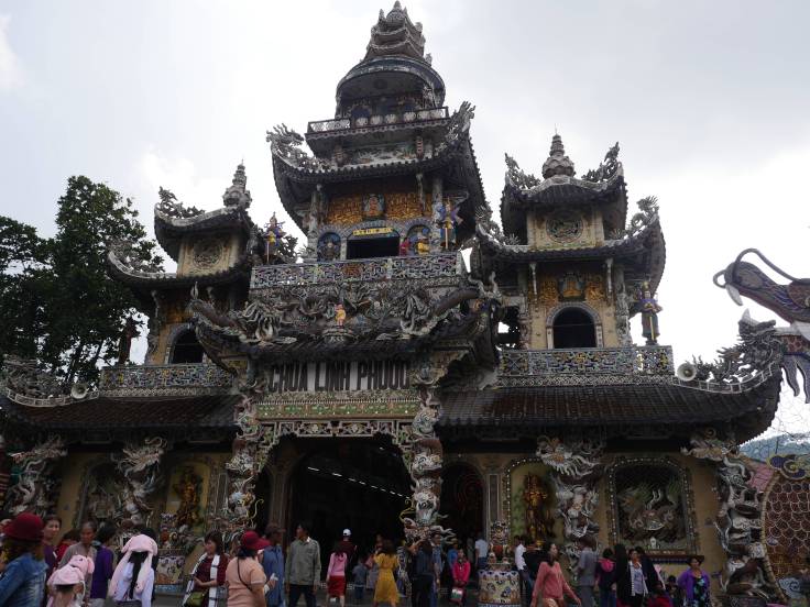 C’est aujourd’hui notre dernière journée à Dalat. On prendra dans l’après-midi un bus qui nous emmènera à Hoi An. Mais en attendant, on a toute la matinée pour visiter. Ni une, ni deux, on en profite pour aller voir l’attraction phare des environs de Dalat : la pagode Linh Phuoc.