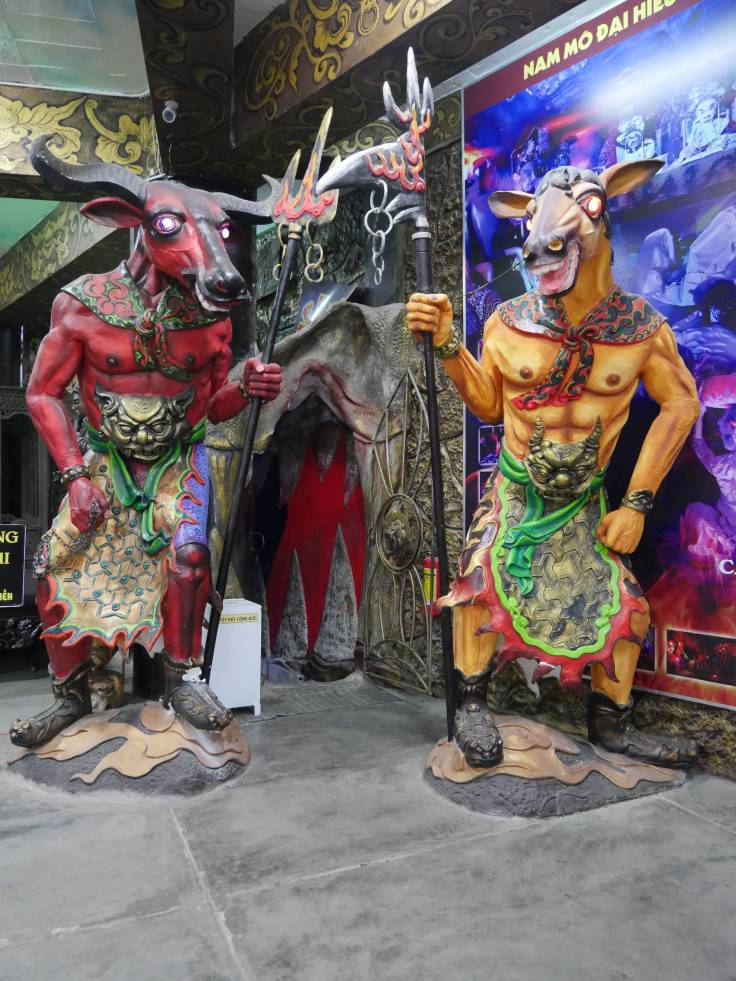 On ne comprend pas bien ce qu’il vient faire ici celui-là. On y va on verra bien. Et bien c’est réellement HORRIBLE ! Il fait très sombre et il y a des images d’horreur un peu partout ! Des gens torturés, tués, découpés, etc… On était au paradis avec bouddha il y a quelques minutes et là on est en enfer ! Non mais Qui a eu l’idée d’inventer un truc pareil ?!?!?! On n’a que très peu apprécié cette visite, autant dire que l’on ne s’y est pas éternisé.