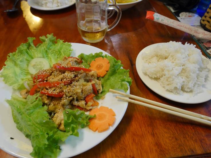 Pour manger, on est aller en face du restaurant Café 43, le restaurant Thanh Nam. Bon également mais un peu moins. D’ailleurs, Ria a la tête des mauvais jour devant son assiette 🙂 🙂