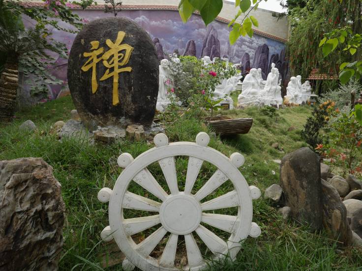 Une fois le ventre bien rempli, c’est sur notre « avion de chasse » que l’on prend la direction du temple Chua Hung Phuoc. Un endroit très reposant dans lequel il y a de nombreuses statues et également une immense falaise qui surplombe le temple. On fera le tour assez rapidement, et environ une vingtaine de minutes plus tard on reprend la route.