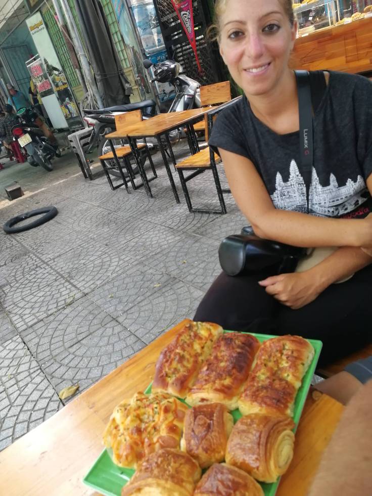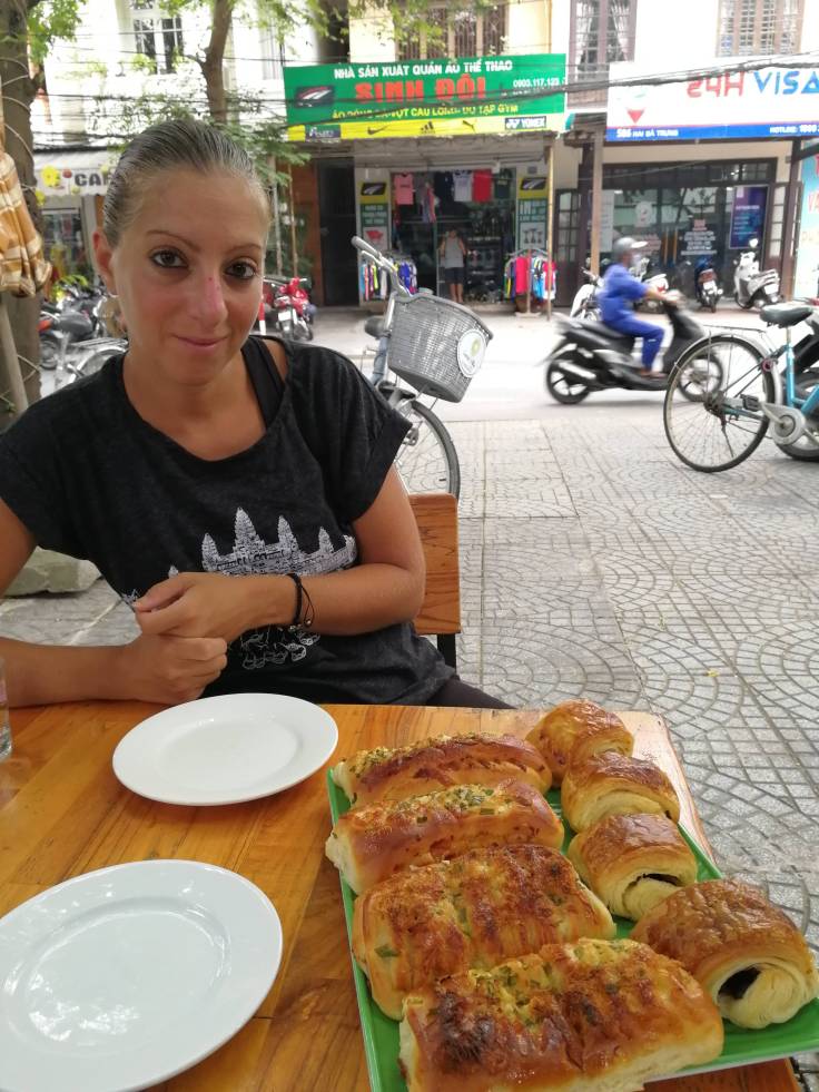 Notre dernière journée à Hoi An ! Du coup, on monte sur notre scooter et on prend la direction de Danang qui est à environ 1h de route. Mais comme chaque matin désormais, un petit-déjeuner au Coffee Bakery pour Ria et quelques miettes pour moi (cette fois-ci elle me laissera tout de même la moitié du pain au chocolat, j’ai de la chance !) :-).