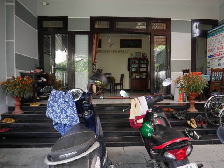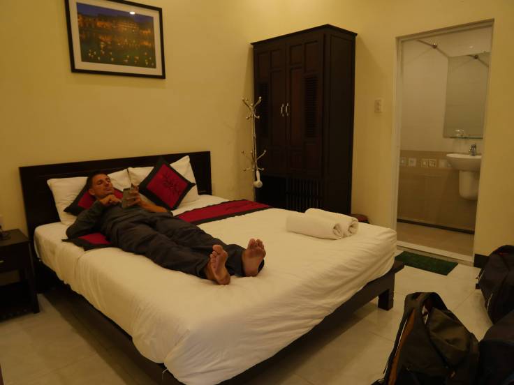 Après notre très sympathique séjour à Dalat, puis un très long trajet en bus, nous voilà enfin arrivés à Hoi An…. à 5h du matin ! Notre hôtel n’était évidemment pas encore ouvert. Du coup, pour éviter de réveiller tout le monde, on décide de patienter devant pendant 1h30 ! Heureusement, nos hôtes, super méga gentils, nous ont permis de prendre un petit-déjeuner et de faire une sieste dans le jardin ! Un vrai régal ! Et notre chambre ultra-confortable ! Aahahah ça change du bus de nuit !!