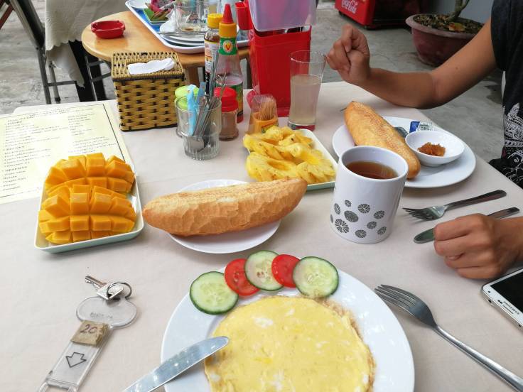 Ce matin on a eu le droit à un méga petit-déjeuner de la part de nos hôtes de Fireworks Homestay. Mais on avait encore un peu faim, du coup, direction notre boulangerie favorite, Coffee Bakery ! Et comme d’habitude, j’ai dû batailler avec Ria pour qu’elle me laisse quelques miettes… 🙂