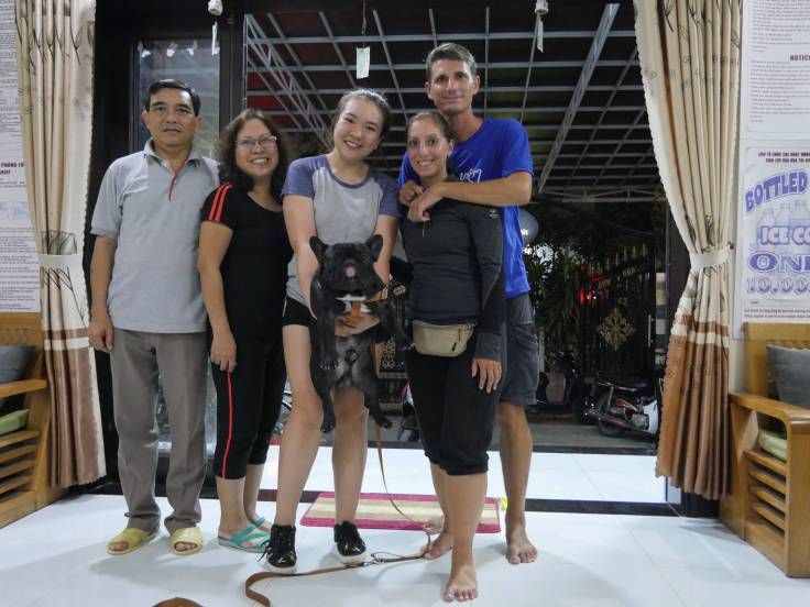 Voilà qui clôture nos aventures à Hoi An. Ce fût vraiment une superbe escale où on a passé de bons moments. On ne regrette pas du tout d’être venu ! Avant de partir, on fera une petite photo de groupe avec nos hôtes du Fireworks Homestay. C’est l’un des meilleurs endroits où on a dormi pour l’instant ! Ils étaient vraiment super super super sympa ! Maintenant, on monte dans le bus et direction Hue !
