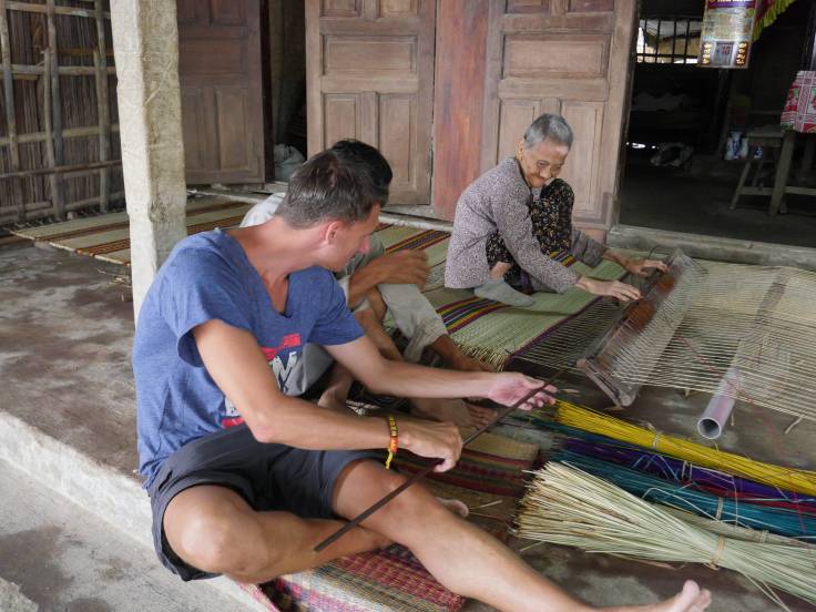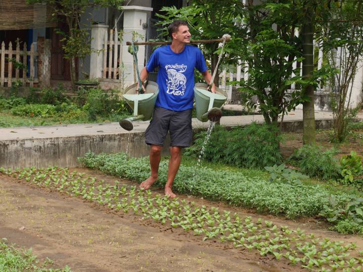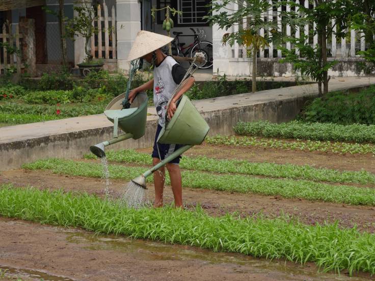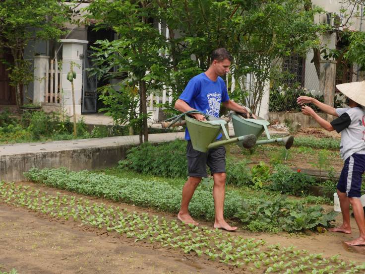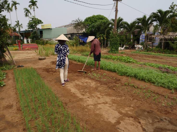 L’autre lieu est le village de Tra Que. Renommé pour sa culture biologique des légumes et herbes aromatiques, c’est l’un des derniers endroits à continuer à cultiver de manière ancestrale (sans machine et sans engrais). D’ailleurs, j’ai pu tester l’arrosage et c’est loin d’être facile ! J’en ai mis un peu partout ! Heureusement, la gentille dame a vite compris que j’étais nul et m’a bien aidé 🙂 Encore un super moment d’échange 🙂
