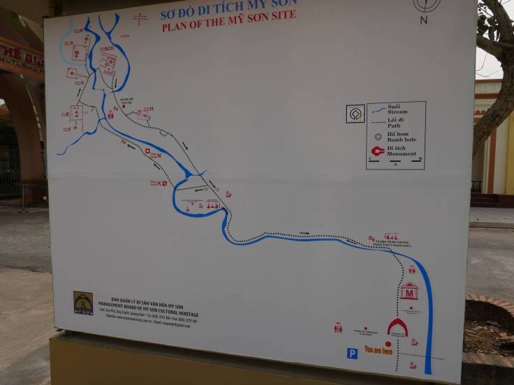 On dépose nos scooters près d’un commerce, sans payer bien sûr, et on rejoint l’entrée. Le site de My Son est immense et les différentes ruines sont assez loin de l’entrée. Du coup, il y a une navette gratuite disponible. Les fourmis nous démangent un peu les jambes, du coup, c’est à pied que l’on fera la route jusqu’aux ruines (environ 30min). C’était très calme et le paysage en vaut le coup !