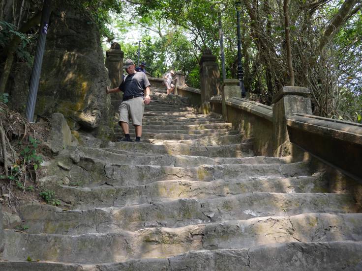 Une fois notre billet en poche, il faut gravir les 156 marches qui nous séparent des différents temples. C’est déjà dur mais si en plus elles ne sont pas toutes à la même hauteur, cela rend l’ascension encore plus difficile ! 🙂
