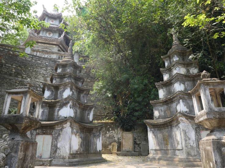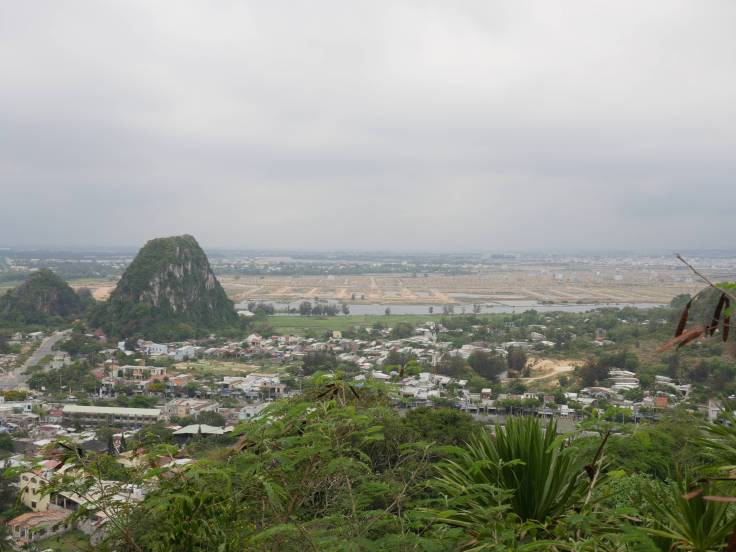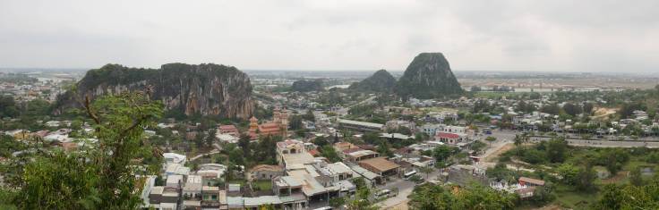 Une fois de nouveau sur la route, on a pu rejoindre le Thuy Son et ses montagnes de marbres ! On a laissé le scooter assez loin car, une fois n’est pas coutume au Vietnam, tous les emplacements devant les commerces sont payants.