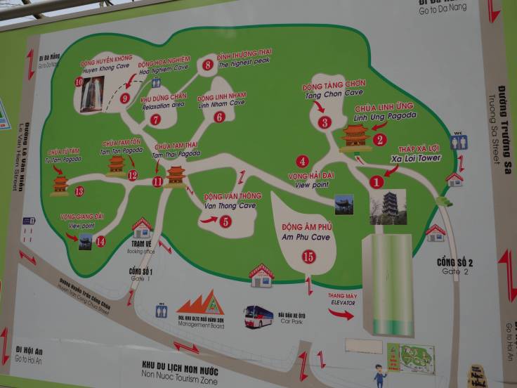 - Montagne de marbres très sympa 40 000 vnd l’entrée et 20 000 vnd le plan. Nous avons eu de la chance un mec nous a donné le sien quand on était à la caisse. Prendre le plan en photo à l’entrée. Il y a un parking gratuit après la 2e entrée (avec plein de cars)