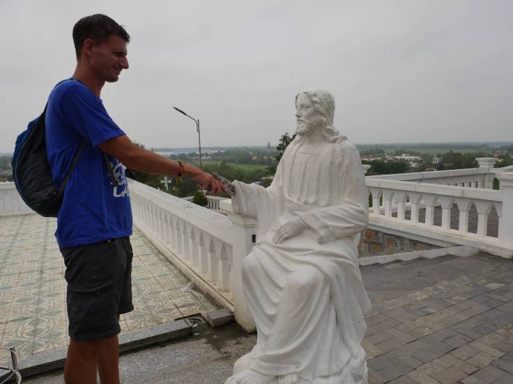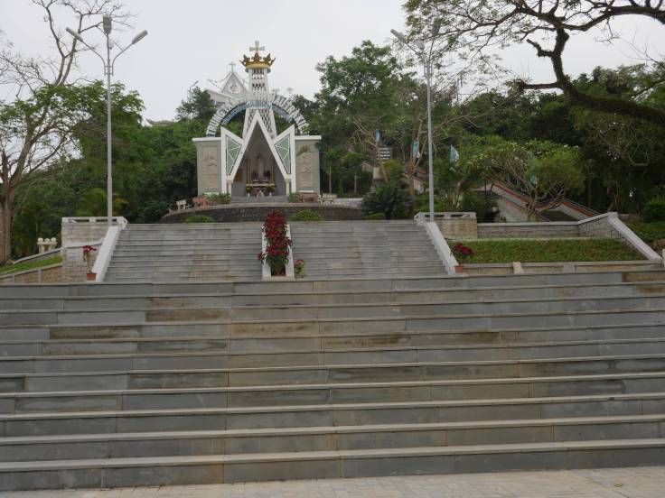 Après avoir visité Angkor Wat au Cambodge, ce sanctuaire est un peu décevant (moins impressionnant). Il nous faudra un peu plus d’une heure pour faire le tour avant d’enfourcher notre bolide pour aller visiter deux lieux. Le premier c’est l’église Tra Kieu. Véritable oeuvre d’art, cette église, construite en 1722 puis déplacée en 1865, a été édifiée en l’honneur de la Vierge.