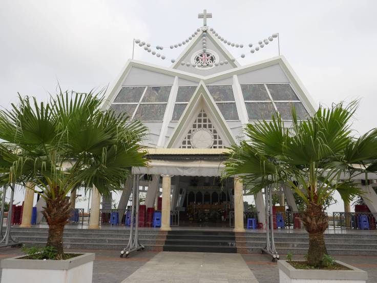 - Village de Tra Kieu et son église futuriste. En haut une vue sur les alentours