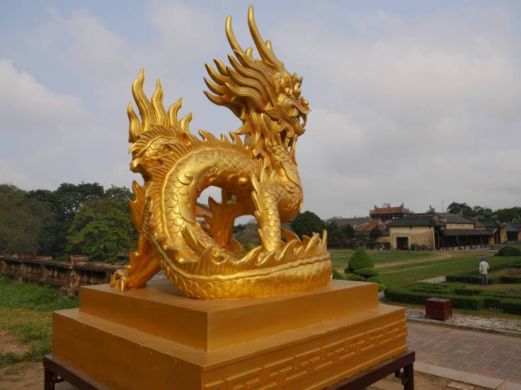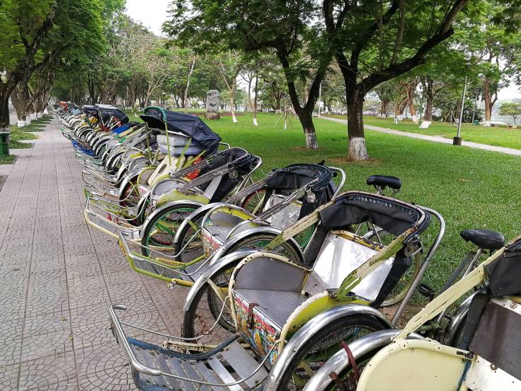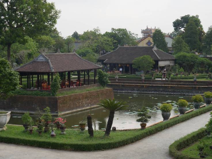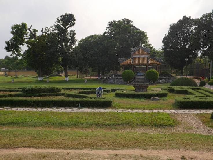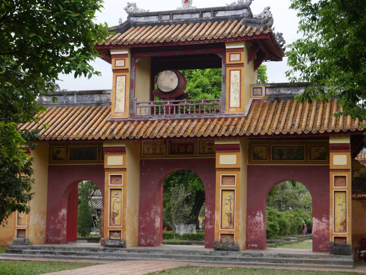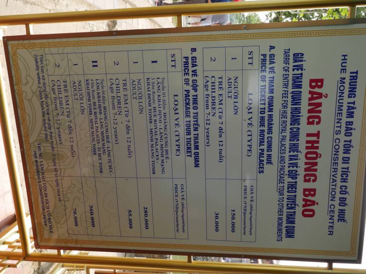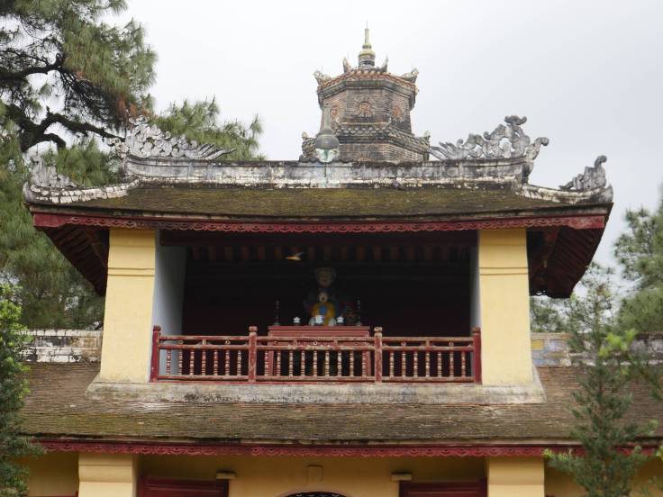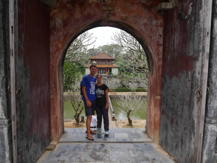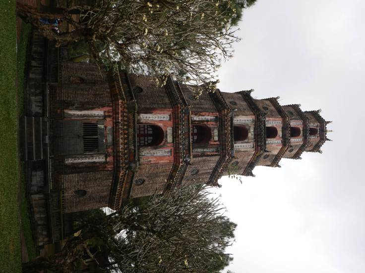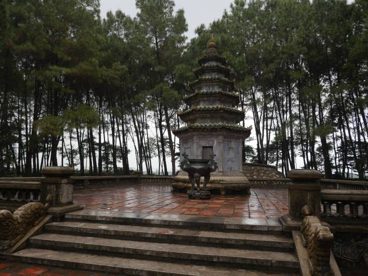 Scooter aujourd’hui pour aller en direction des deux tombes qui sont comprises dans notre ticket et la pagode Thiem Mu qui est sur le chemin. Le temps est couvert et la pluie semble proche… On louera le scooter à notre hôtel pour ne pas se prendre la tête à chercher aux quatre coins de la ville.