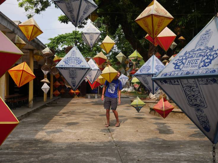Après notre beau séjour à Hoi An, c’est l’heure du départ pour Hue. Mais avant de partir la dame de la maison d’hôte nous a préparé des pancakes banane. C’est trop gentil de sa part ! Cela restera l’un des meilleurs endroits où on aura dormi. Après 4h de bus nous voilà arrivés à Hue…sous une courte averse. Notre hôtel est à 30min à pied. Contrairement à ce que peuvent laisser penser les photos, le trajet en bus était loin d’être confortable 🙂