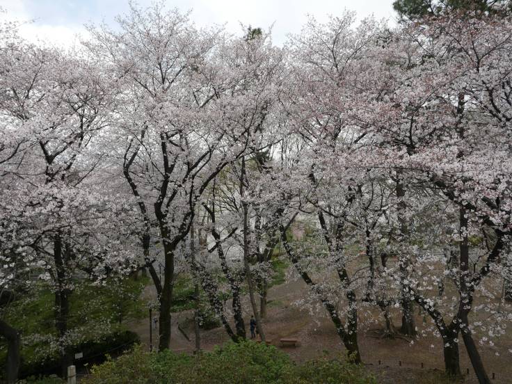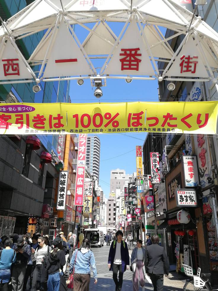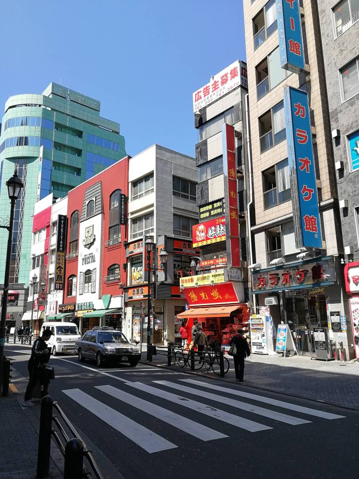 Vu le prix plus que faramineux des chambres doubles à Tokyo, environ 100 euros la nuit minimum, on avait opté pour un dortoir dans le quartier de Toshima. Une fois les affaires déposées, on part à la conquête de la ville ! Direction Shinjuku qui est à 6km à pied. Le faire à pied, plutôt qu’en métro, nous permet de découvrir les petites rues, quartiers résidentiels et des petits parcs très sympas, comme le parc Hakone, et son point de vue, entouré de cerisiers. A première vue, c’est très calme. Aucune voiture ou presque, pas de bruit. Moi qui pensais que Tokyo était une immense boîte de nuit.