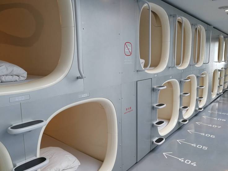On est ensuite retourné à l’hôtel pour prendre nos affaires et rejoindre notre autre hôtel, le Nine Hours Hostel, qui est en fait un hôtel à capsules ! Étage différent pour les hommes et les femmes. On a l’impression d’être un cosmonaute ou bien d’être en prison, c’est au choix :-).