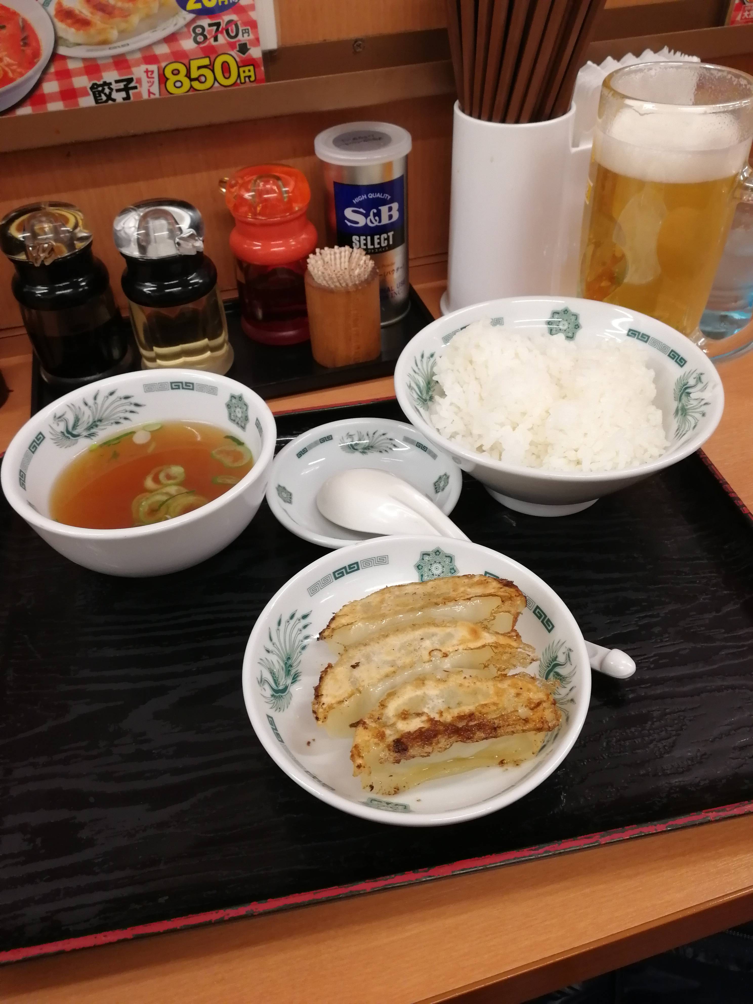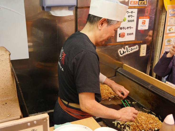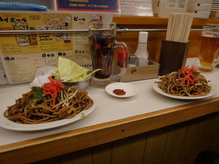 Notre premier repas, on l’a pris dans la minuscule ruelle de Omoide-yokocho, où il y avait pleins de petits restaurants. On a essayé un Yakisoba (nouilles sautées avec du gingembre). Un mot : délicieux ! Par contre le prix aussi est délicieux : 20 euros pour deux. Cela nous change du Vietnam…