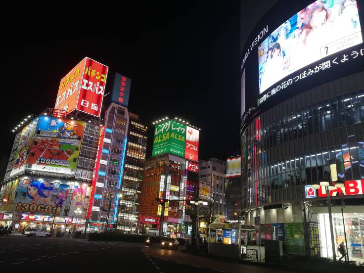 Retour ensuite à Shinjuku, vous vous souvenez le quartier calme ? Bah là, c’est tout le contraire ! La rue Kabukicho est blindée de monde, des spots publicitaires à foison sur les immeubles, de la musique partout. A causes des enseignes mega lumineuses, on a même des fois l’impression qu’il fait jour en pleine nuit. A ce moment, on prend vraiment conscience de ce que peut être la folie de Tokyo.