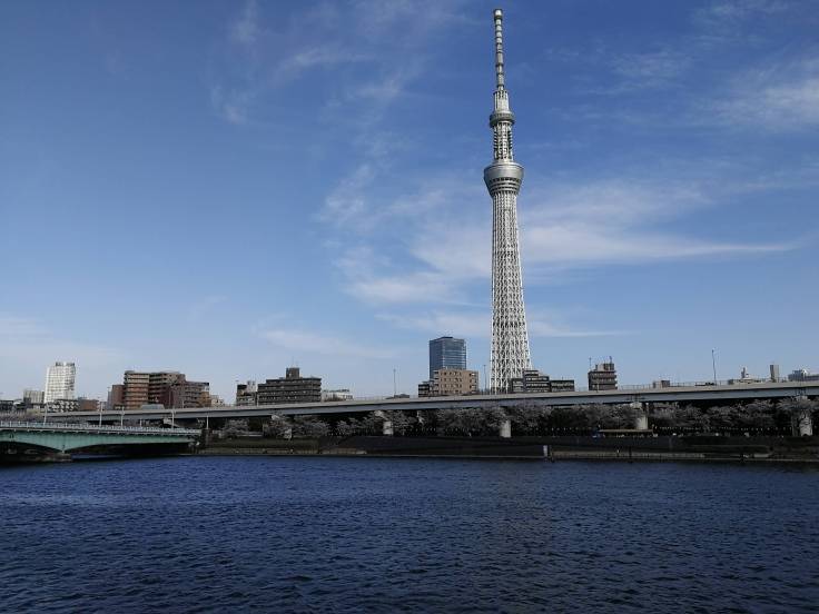 L’après-midi, on a quitté avec beaucoup de regret toute cette foule, pour rejoindre la rivière Sumida, pour avoir une vue sur la SkyTree, tour de radiodiffusion haute de 634m, et également sur l’énorme espèce de crotte d’or, qui est en fait le quartier général du vendeur de bière Asahi. C’est tellement moche 🙂