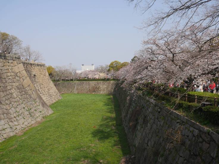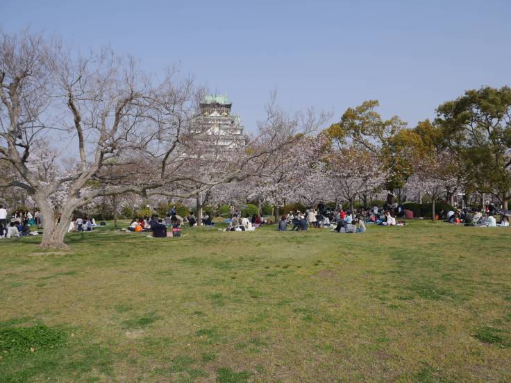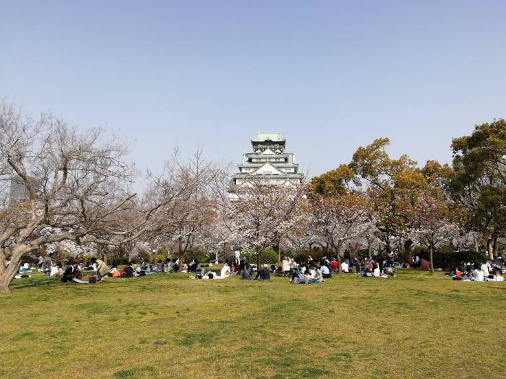 Bref, on pose nos affaires dans notre super dortoir…. et on file, à pied, en direction du château de Osaka. Il y a un grand parc autour où il y a plein de gens qui profitent du grand soleil pour manger sous les magnifique cerisiers en fleurs.