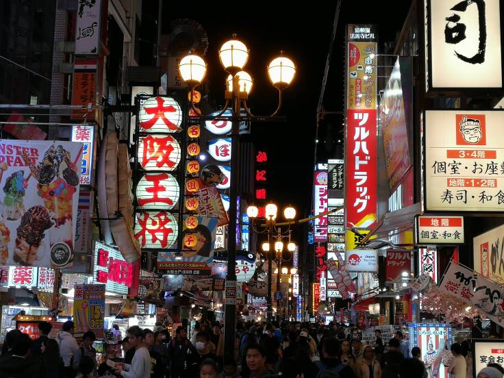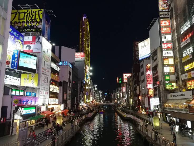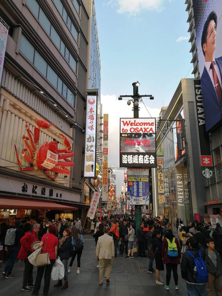 Après notre premier fabuleux périple à Tokyo, on découvre maintenant Osaka. A première vue c’est pareil : propre, grand et pleins de buildings. Mais il y a tout de même quelque chose de différent. Déjà c’est plus bruyant, car le bitume n’est pas absorbant comme à Tokyo, et ça fait une grosse différence. Et enfin, ici les piétons traversent même au feu rouge ! Quel manque de discipline affligeant ! 🙂 🙂
