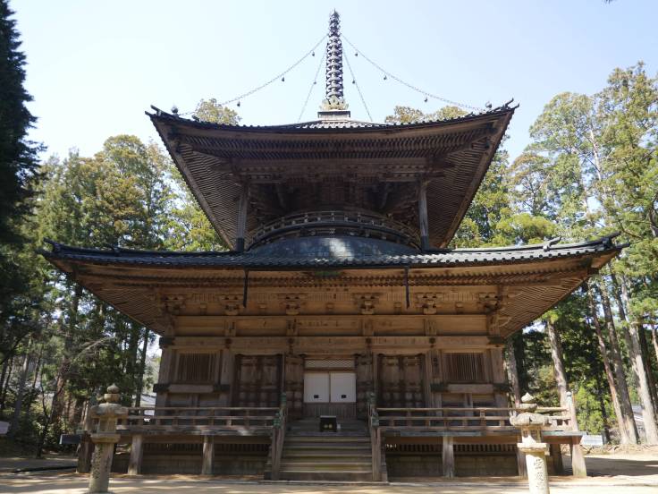 Puis on s’en est allé voir le complexe Danjo Garan, qui est entouré d’immenses arbres, où il y a le Konpon Daito qui est vraiment magnifique et gigantesque ! On se sent tout petit à côté.