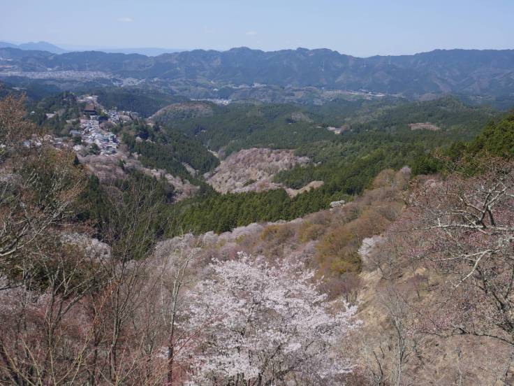 La balade nous offre de superbes points de vue sur les cerisiers ! Il y a aussi pas mal de temples (Kinpusen-ji, Chikurin-in,…).