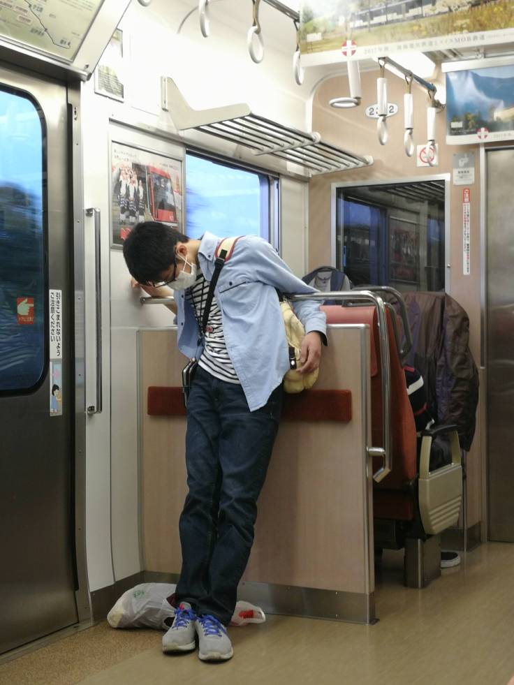 Pour le retour, bis-repetita : 1h30 de train-train et ensuite le métro… Mais bon, on a pu voir que certains dans le train étaient plus fatigués que nous ! Cela dit, c’est une bonne technique pour dormir debout 🙂 🙂 🙂 Le soir on prendra un bon repas avant de faire nos valises et de prendre le Shinkansen le lendemain pour Hiroshima !